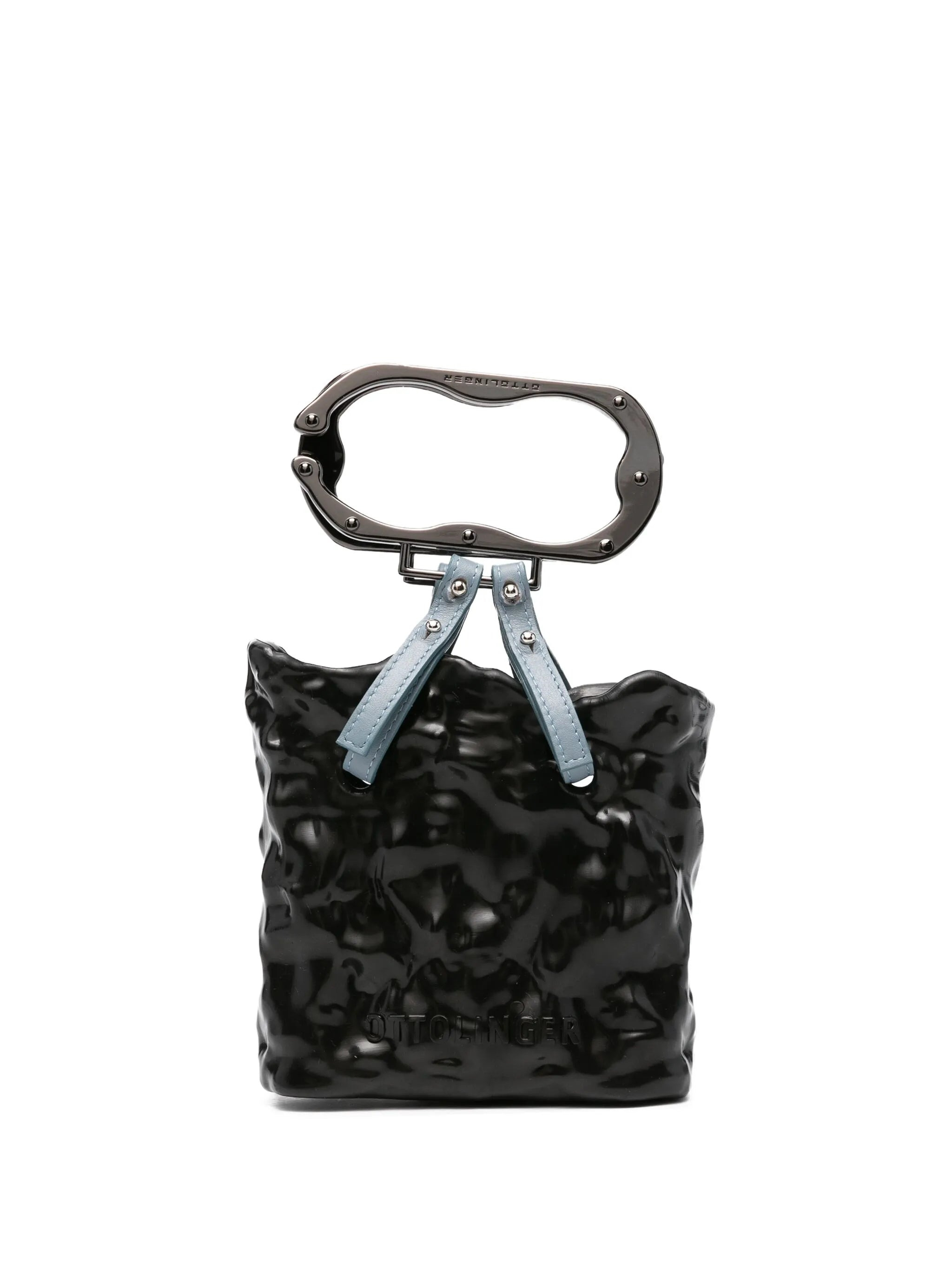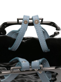 black carabiner handle light-blue leather straps gunmetal silver-tone hardware embossed logo - Color: BLACK - Made in: Bangladesh - Designer Style ID: 12690172601 BLK