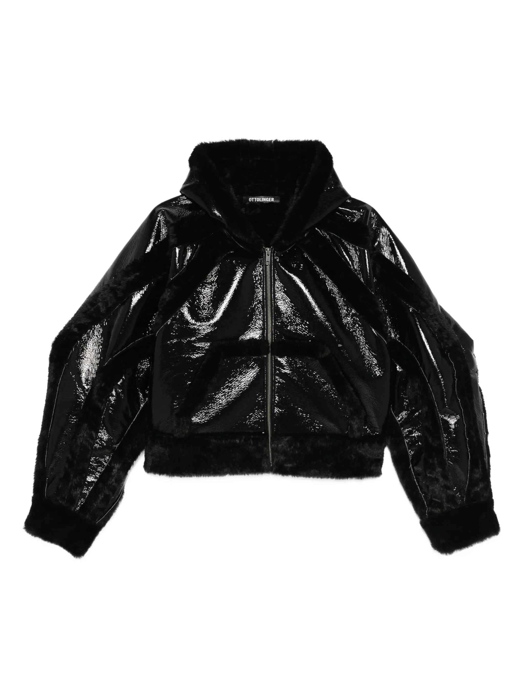 black faux fur trim zip front fastening hooded neckline long sleeves - Color: BLACK - Made in: Greece - Designer Style ID: 10970240901 BLK Composition and care Cotton: 2.0%, Polyester: 82.0%, Polyurethane: 10.0%, Viscose: 1.0%, Other Fibres: 5.0%