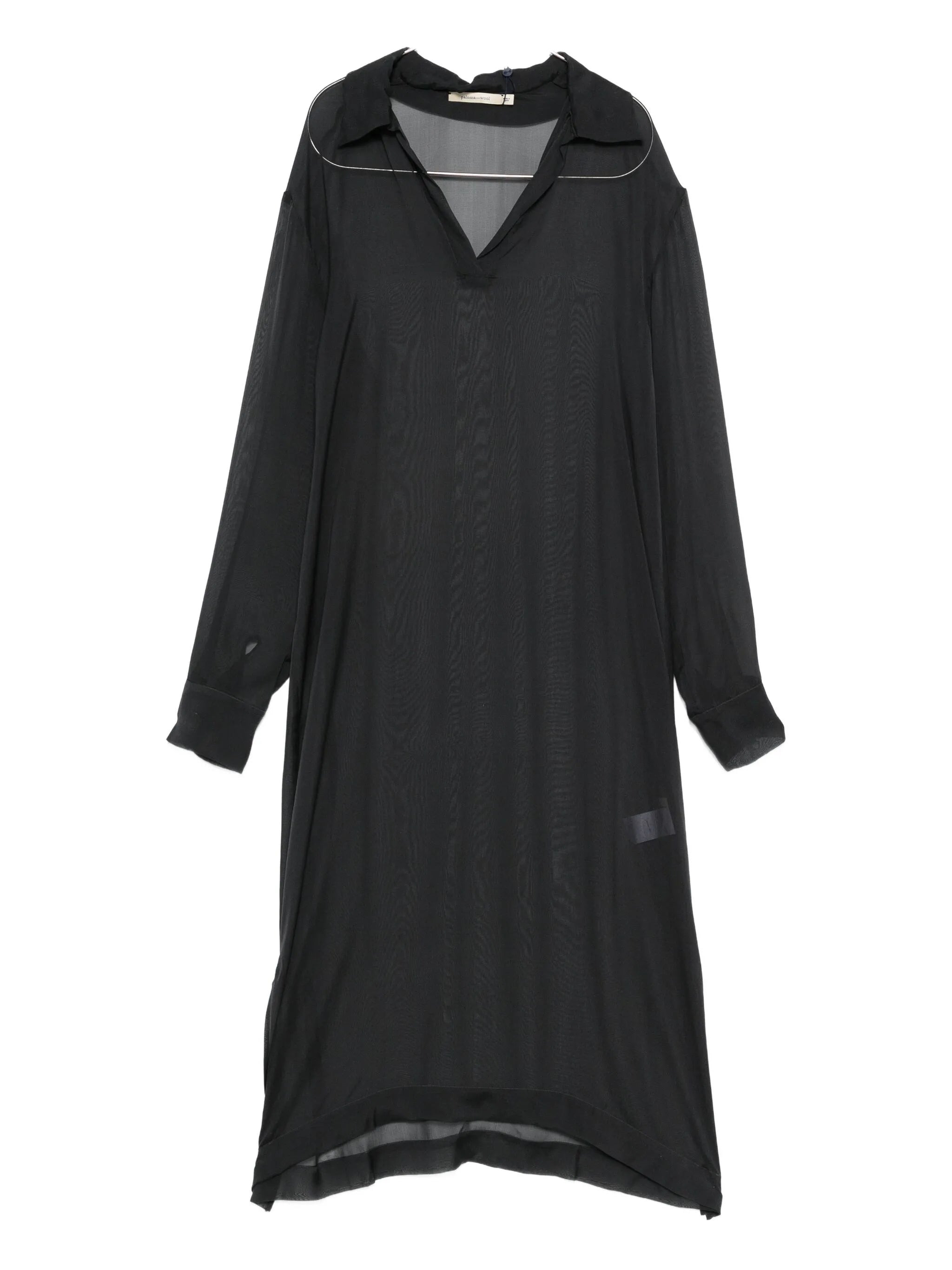 grey v-neck long sleeves spread collar sheer design - Color: GREY - Made in: Spain - Designer Style ID: VO5001 SABRE GREY Composition and care Silk: 100.0%