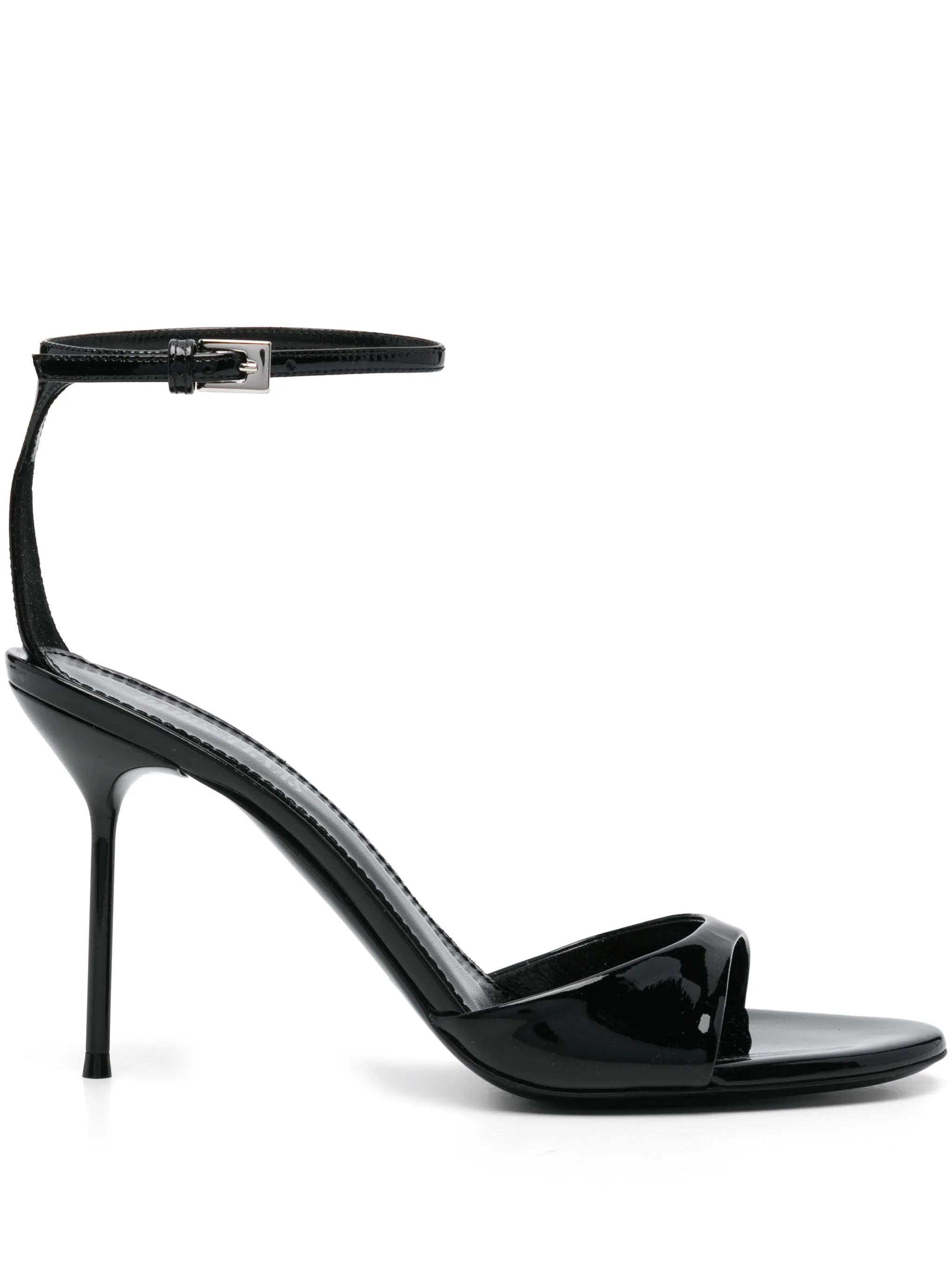 black buckle-fastening ankle strap single toe strap high stiletto heel square toe - heel: 9.5 centimetres - Color: BLACK - Made in: Italy - Designer Style ID: PX1571 XVN01 BLACK Composition and care Lining Composition Calf Leather: 100.0%, Outer Composition Patent Leather: 100.0%, Sole Composition Patent Leather: 100.0%