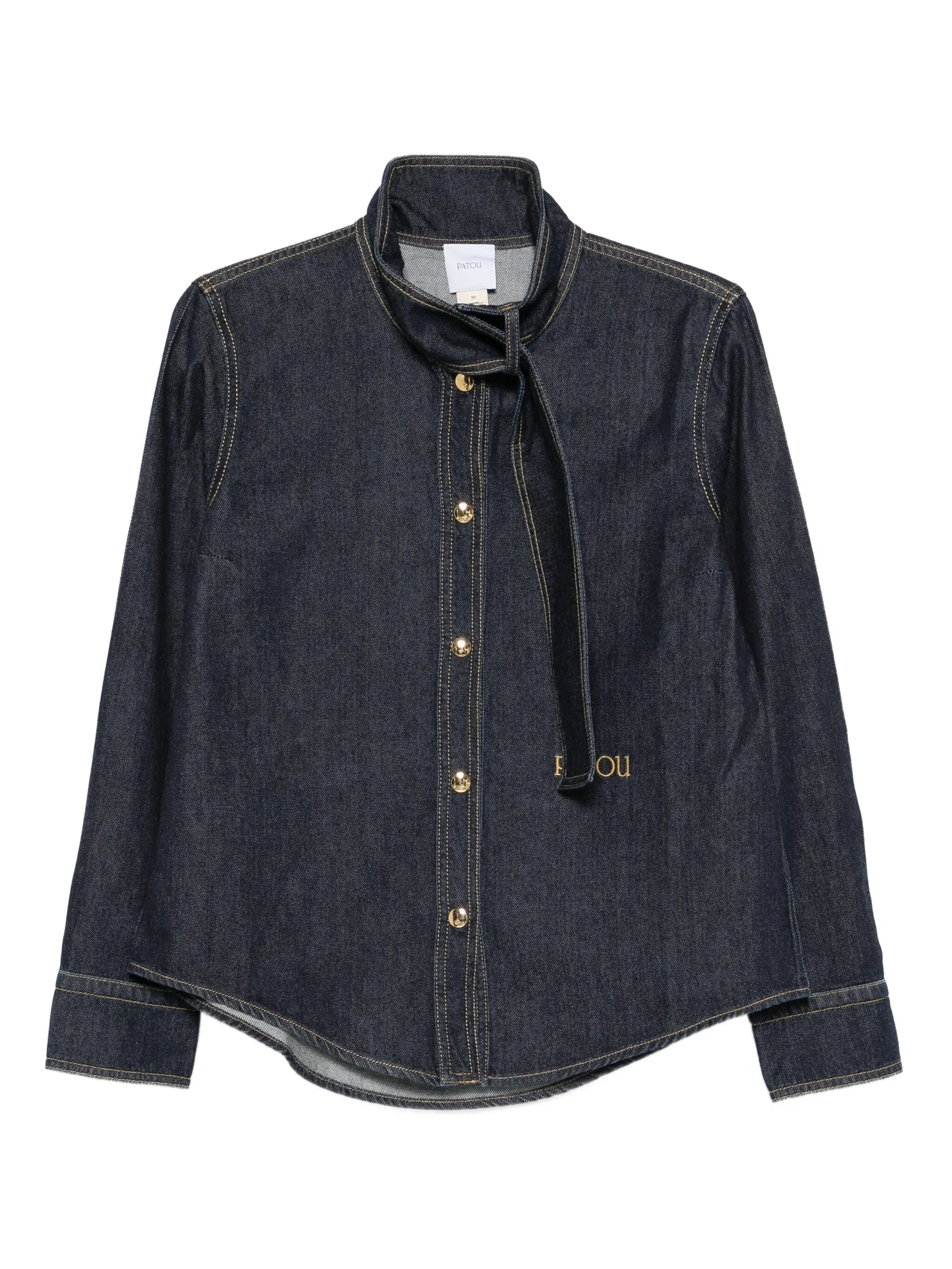 blue tie neck button fastening long sleeves curved hem embroidered logo - Color: BLUE - Made in: Tunisia - Designer Style ID: BL045022 642B Composition and care Cotton: 72.0%, Viscose: 28.0%