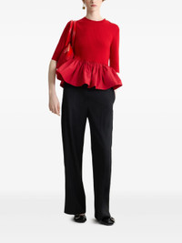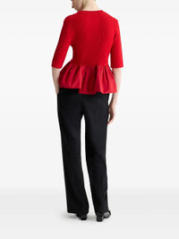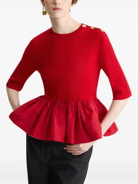red ribbed knit ruffle hem mid-length sleeves button detailing - Color: RED - Made in: Turkey - Designer Style ID: KN2738040 314R Composition and care Outer Composition Merino: 100.0%, Trims Composition Recycled Polyester: 100.0%
