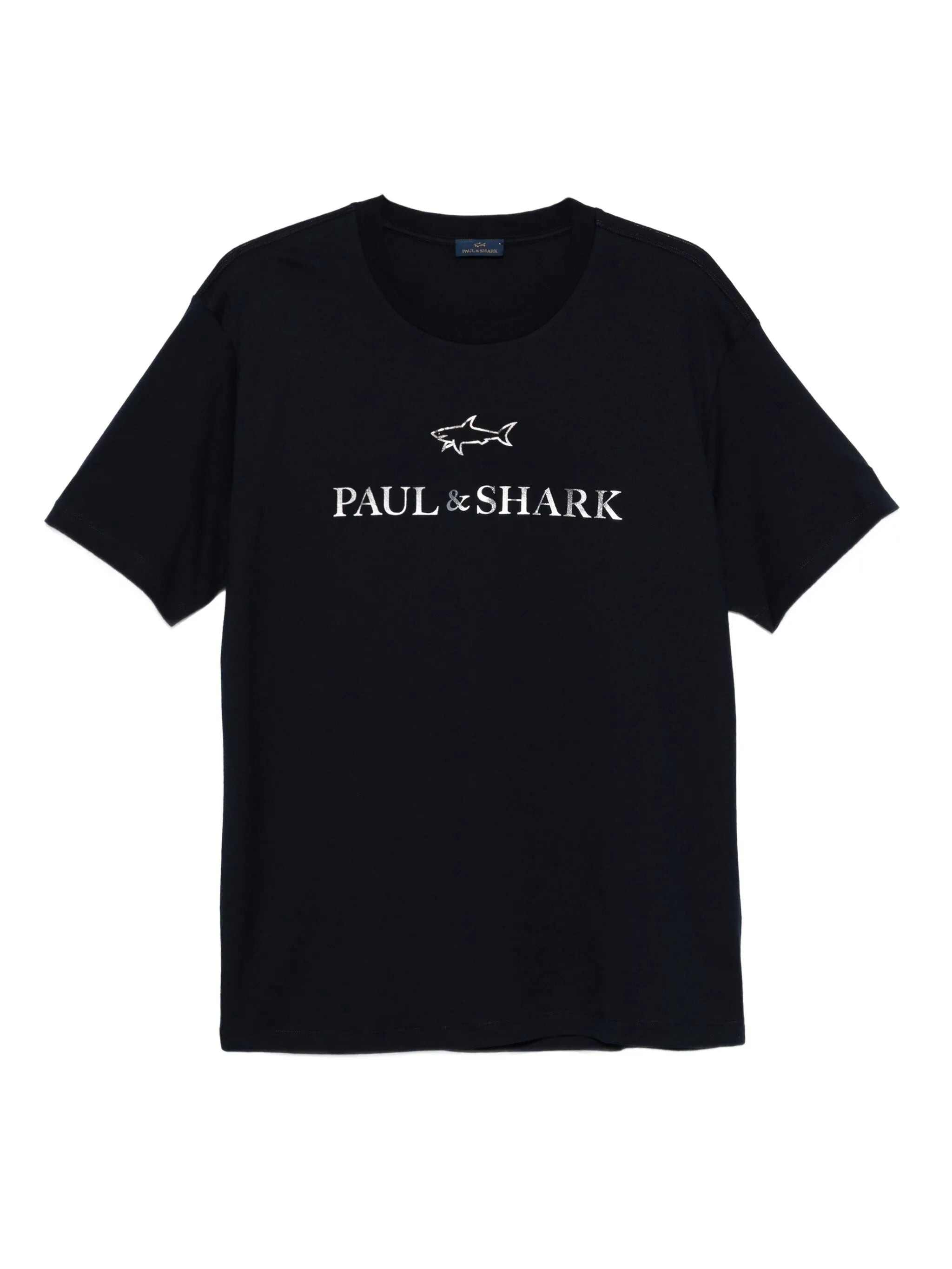 navy blue cotton material shark logo detail crew neck short sleeves straight hem - Color: BLUE - Made in: Tunisia - Designer Style ID: 99311007 50F Composition and care Cotton: 100.0%
