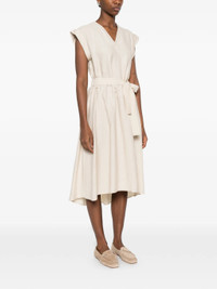 V-neck belted-waist midi dress