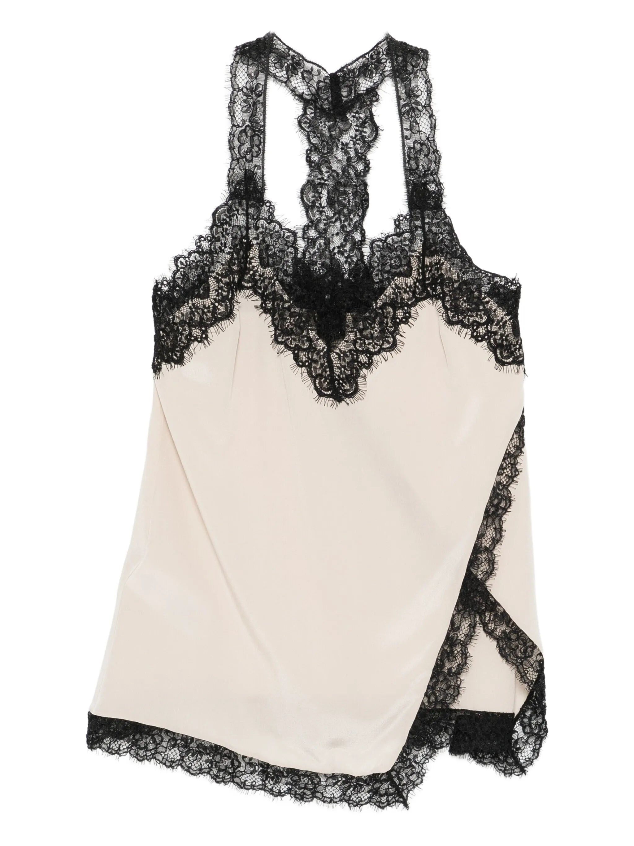 beige silk lace trim sleeveless asymmetrical hem - Color: NEUTRALS - Made in: Tunisia - Designer Style ID: 105592 A2SS I24 Composition and care Silk: 100.0%