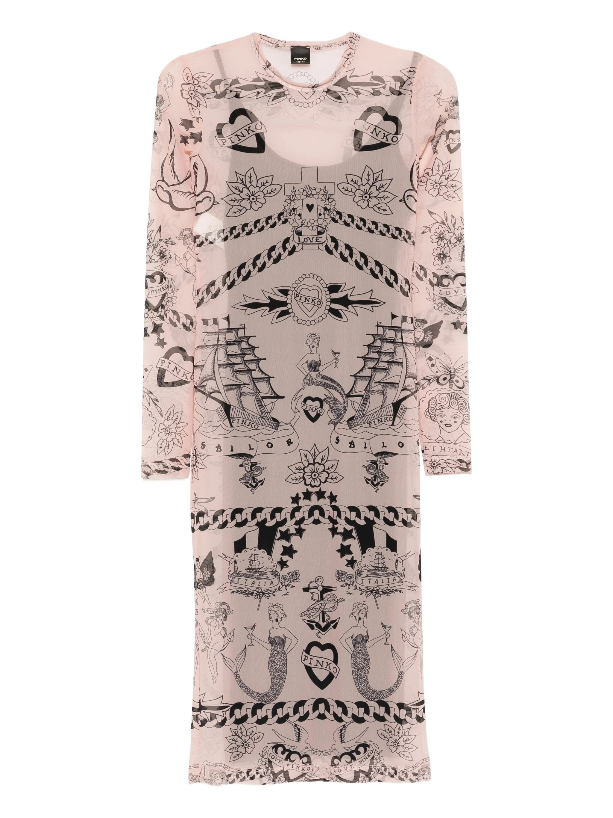 blush pink tattoo print long sleeves round neck interior slip-dress - Color: NEUTRALS/BLACK - Made in: Italy - Designer Style ID: 105797 A2VM NZ8 Composition and care Outer Composition Nylon: 80.0%, Lining Composition Nylon: 90.0%, Outer Composition Elastane: 20.0%, Lining Composition Elastane: 10.0%