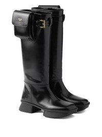 Brushed leather boots with pouch