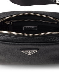 black Saffiano leather two-way zip fastening adjustable detachable shoulder strap enamel triangle logo silver-tone hardware main compartment logo-print lining internal logo plaque internal slip pocket - Color: BLACK - Made in: Italy - Designer Style ID: 2VH184 2BBE F0002 Composition and care Outer Composition Leather: 100.0%, Lining Composition Recycled Nylon: 100.0%