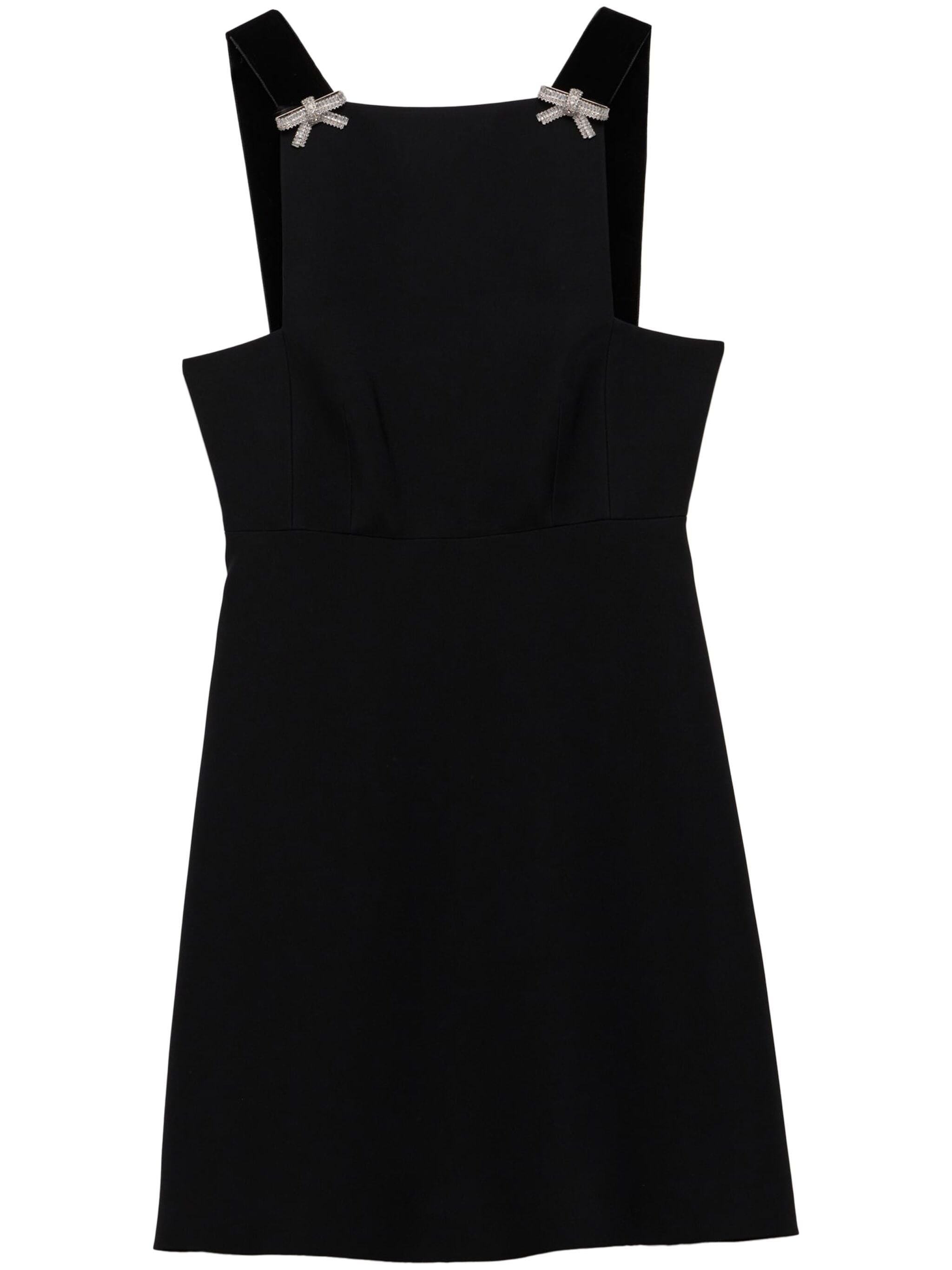 black cady texture concealed rear zip fastening square neck bow detailing crystal embellishment sleeveless open back slight flare straight hem thigh-length - Color: BLACK - Made in: Italy - Designer Style ID: P3O28R S OOO 155O F0002 Composition and care Viscose: 100.0%