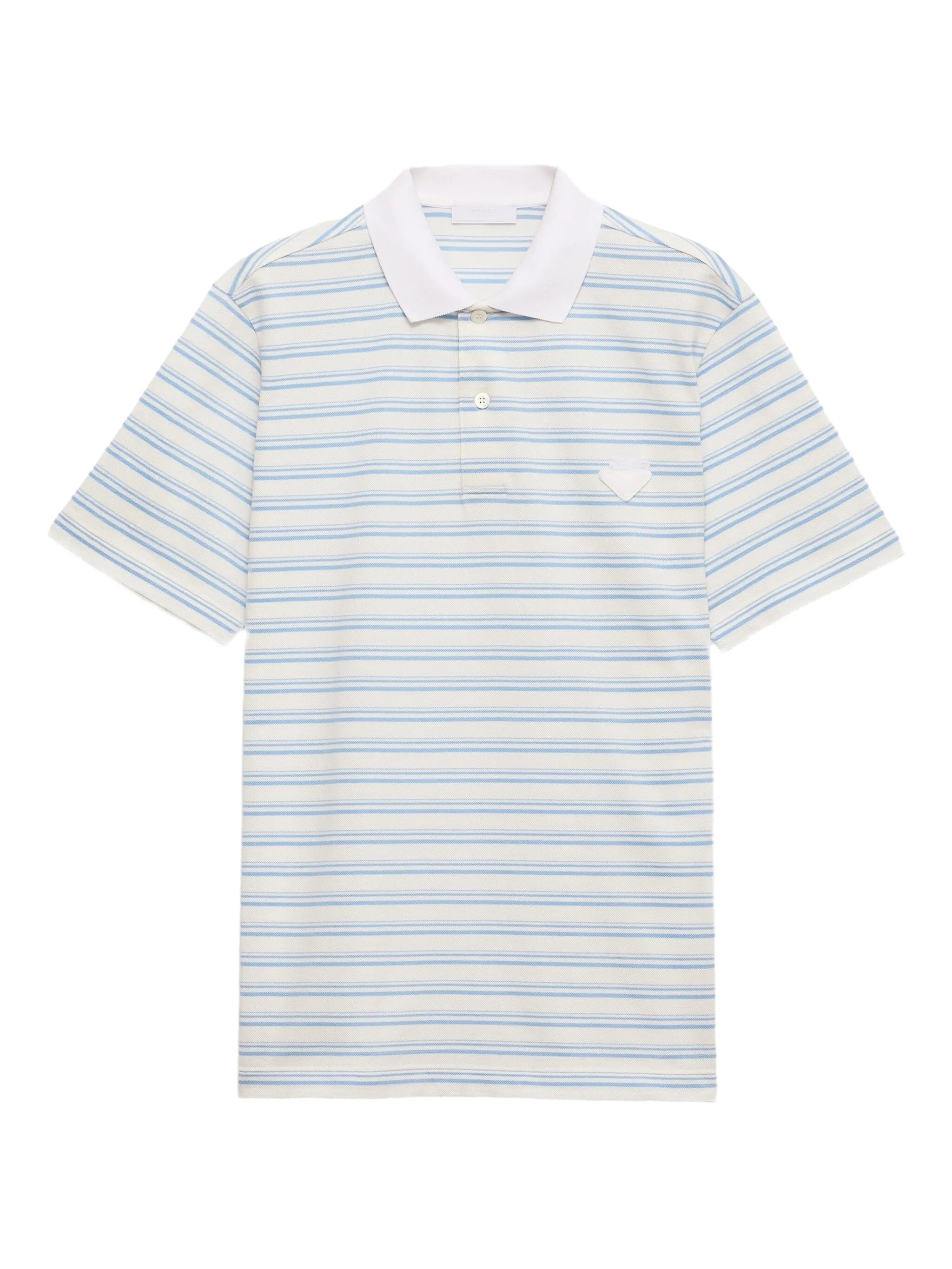 white short front button fastening horizontal stripe pattern triangle logo polo collar - Color: WHITE/BLUE - Made in: Italy - Designer Style ID: UJN765 S WMO 17KS F0W3B Composition and care Cotton: 100.0%