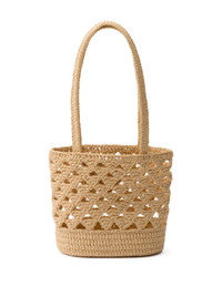 beige canvas crochet open knit embroidered logo to the front triangle logo two flat shoulder straps open top no lining bucket body - Color: NEUTRALS - Made in: Italy - Designer Style ID: 1BG494 2M2T F0018 Composition and care Outer Composition Fabric: 100.0%