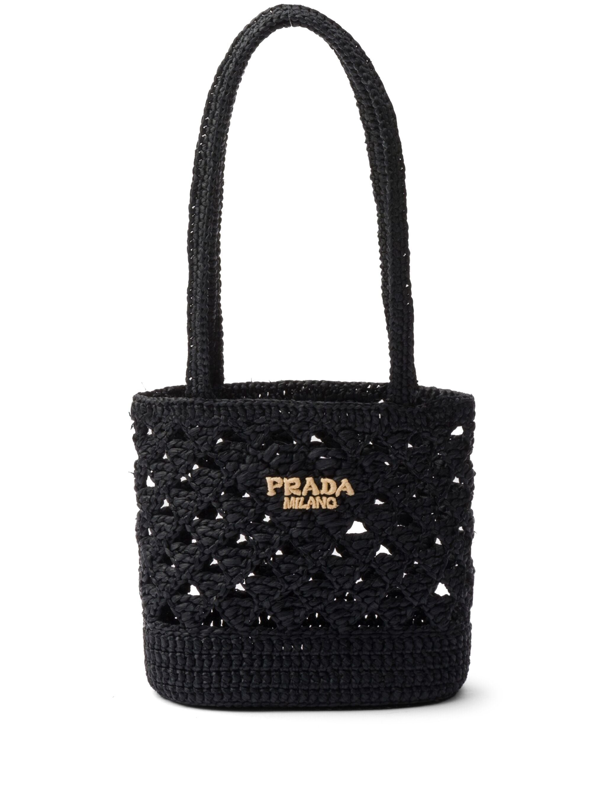 black canvas crochet open knit embroidered logo to the front triangle logo two flat shoulder straps no lining bucket body - Color: BLACK - Made in: Italy - Designer Style ID: 1BG494 2M2T F0ES7 Composition and care Outer Composition Fabric: 100.0%