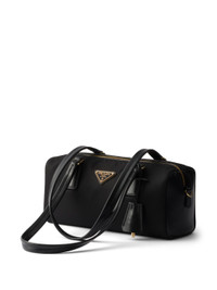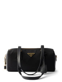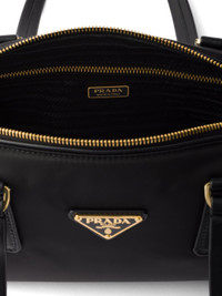 black recycled nylon/calf leather panelled design top zip fastening two flat top handles enamel triangle logo padlock detail main compartment internal zip-fastening pocket internal logo plaque This piece comes complete with a protective dust bag. - Color: BLACK - Made in: Italy - Designer Style ID: 1BB127 V ODO 2C8Q F0002 Composition and care Outer Composition Calf Leather: 100.0%, Outer Composition Recycled Nylon: 100.0%