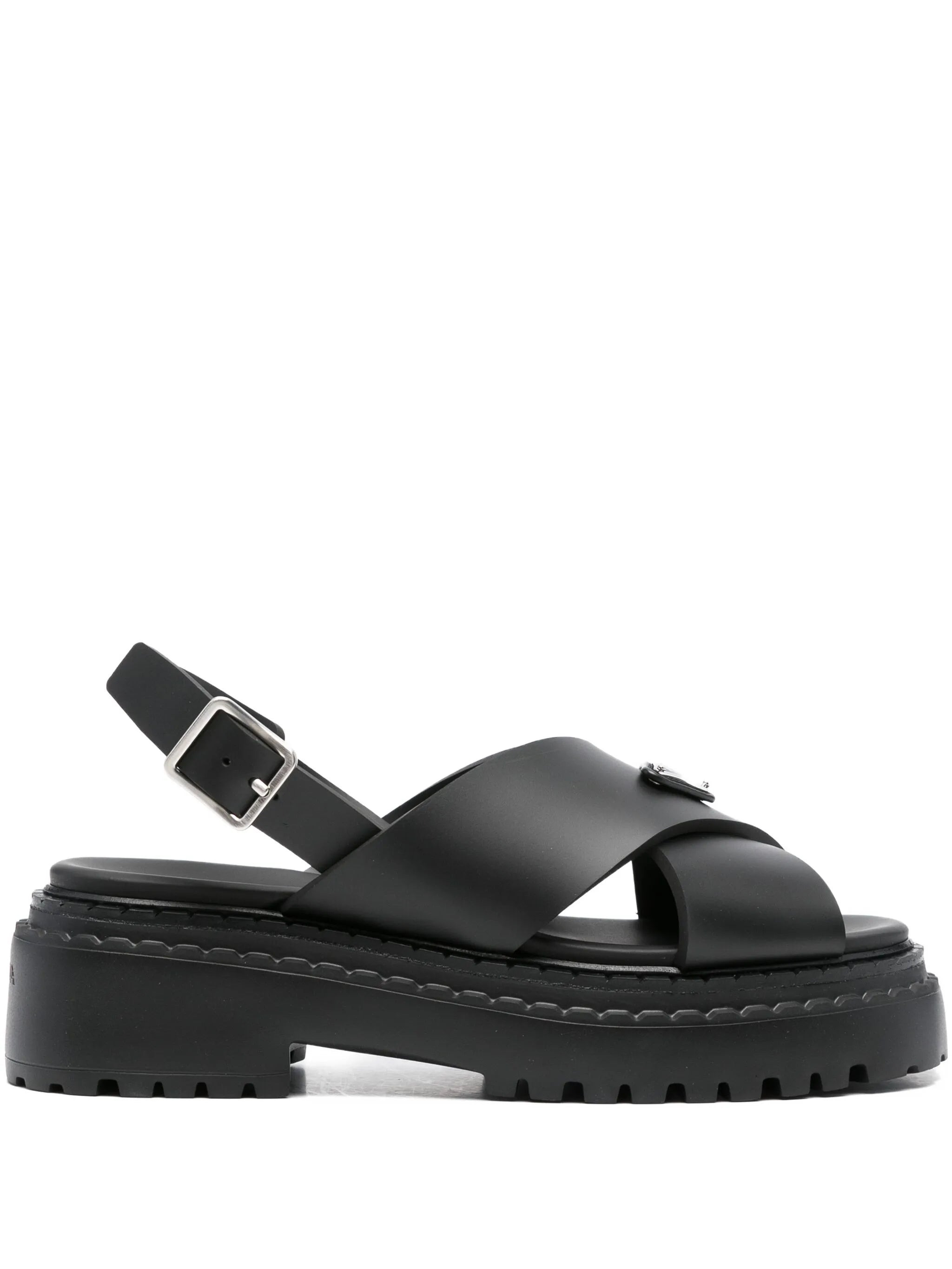 black platform sole slingback design buckle fastening cross-strap detail logo plaque - heel: 4.0 centimetres - Color: BLACK - Made in: Italy - Designer Style ID: 1X102O F 055 3LKK F0002 Composition and care Lining Composition Calf Leather: 100.0%, Outer Composition Polyurethane: 100.0%, Lining Composition Polyurethane: 100.0%, Sole Composition Rubber: 100.0%
