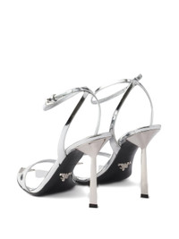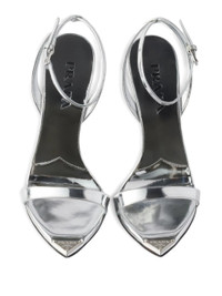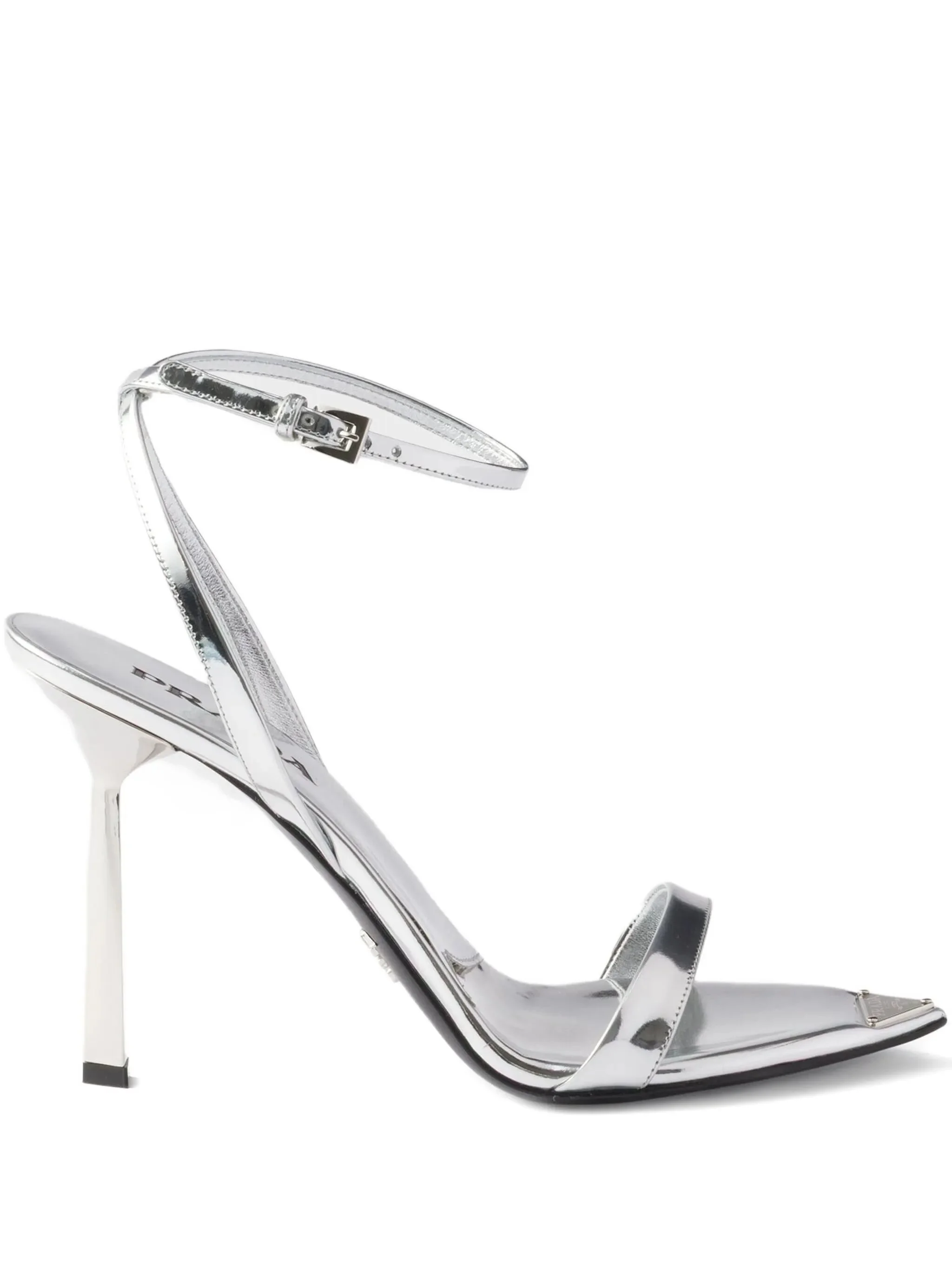 silver-tone metallic leather ankle strap buckle fastening stiletto heel triangle logo - heel: 8.0 centimetres - Color: SILVER - Made in: Italy - Designer Style ID: 1X923M F D100 3AU1 F0118 Composition and care Outer Composition Leather: 100.0%, Lining Composition Leather: 100.0%, Sole Composition Leather: 100.0%