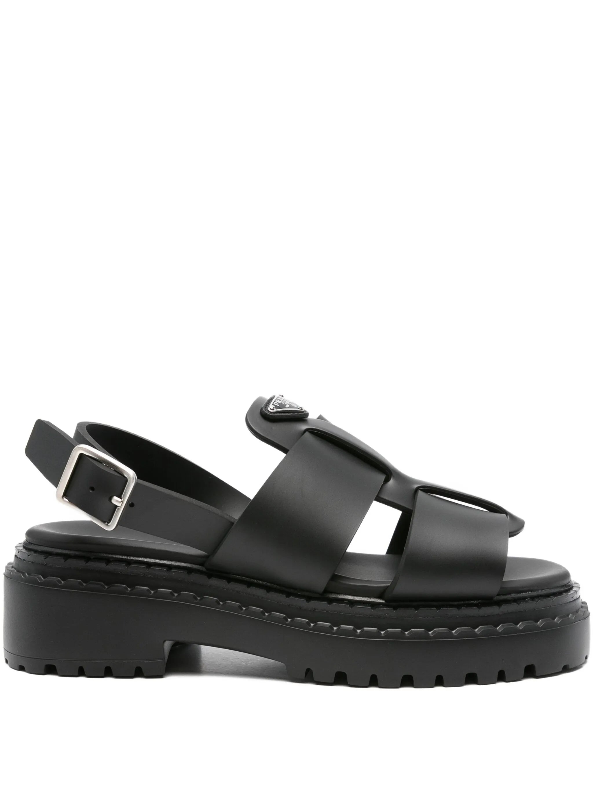 black leather platform sole buckle fastening slingback strap open toe - heel: 5.5 centimetres, platform: 3.0 centimetres - Color: BLACK - Made in: Italy - Designer Style ID: 1X103O F 055 3LKK F0002 Composition and care Outer Composition Leather: 100.0%, Lining Composition Leather: 100.0%, Sole Composition Rubber: 100.0%