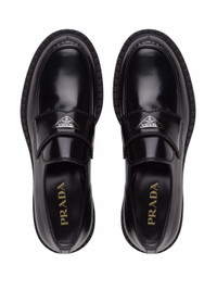 black leather enamel triangle logo silver-tone hardware almond toe branded insole slip-on style low heel chunky rubber sole - heel: 3.5 centimetres - Color: BLACK - Made in: Italy - Designer Style ID: 2DE127 F G000 055 F0002 Composition and care Outer Composition Leather: 100.0%, Lining Composition Leather: 100.0%, Sole Composition Rubber: 100.0%