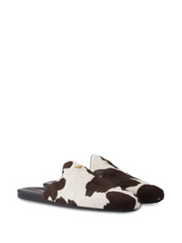 brown and white cow print design open back pointed toe flat sole padded insole - Color: WHITE/BROWN - Made in: Italy - Designer Style ID: 1S008O F DD05 ASA F0G3N Composition and care Lining Composition Calf Leather: 100.0%, Outer Composition Calf Hair: 100.0%, Sole Composition Rubber: 100.0%