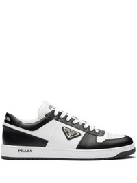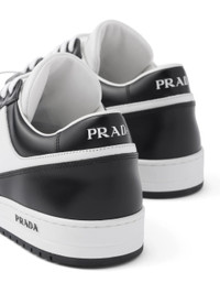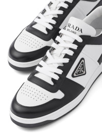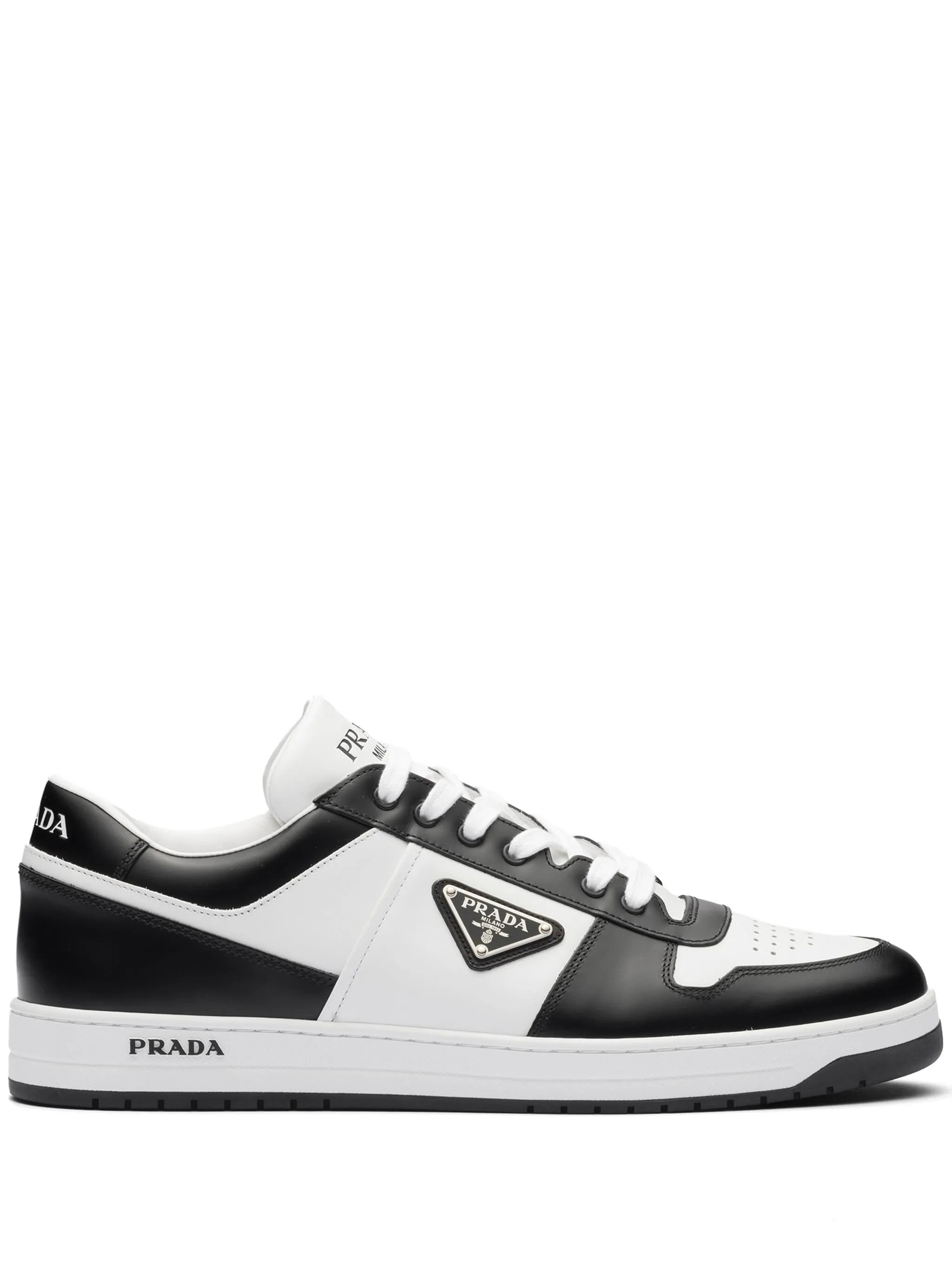 white/black calf leather smooth grain enamel triangle logo logo-print tongue branded heel counter logo at the sole colour-block panelled design round toe perforated toebox front lace-up fastening rubber outsole - heel: 3.0 centimetres, sole height: 2.5 centimetres - Color: BLACK/WHITE - Made in: Italy - Designer Style ID: 2EE364 F D003 3LKG F0T8F Composition and care Outer Composition Leather: 100.0%, Lining Composition Leather: 100.0%, Sole Composition Rubber: 100.0%