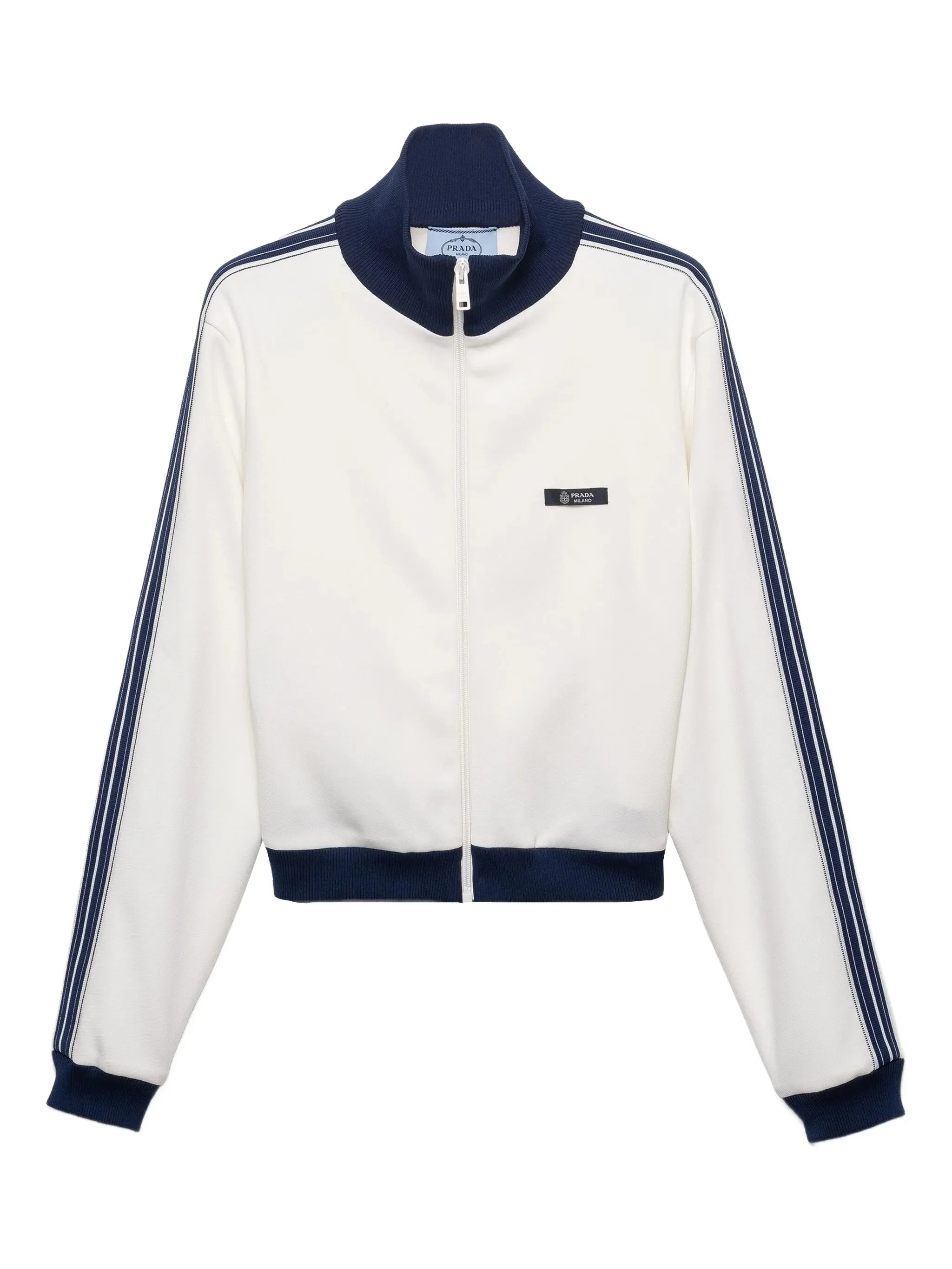 neutral ribbed knit collar, hem, and cuffs zip closure knit stripes sleeves leather elbow patches logo label - Color: WHITE/BLUE - Made in: Italy - Designer Style ID: 138644 S OOO 18VX F0304 Composition and care Calf Leather: 50.0%, Polyester: 100.0%