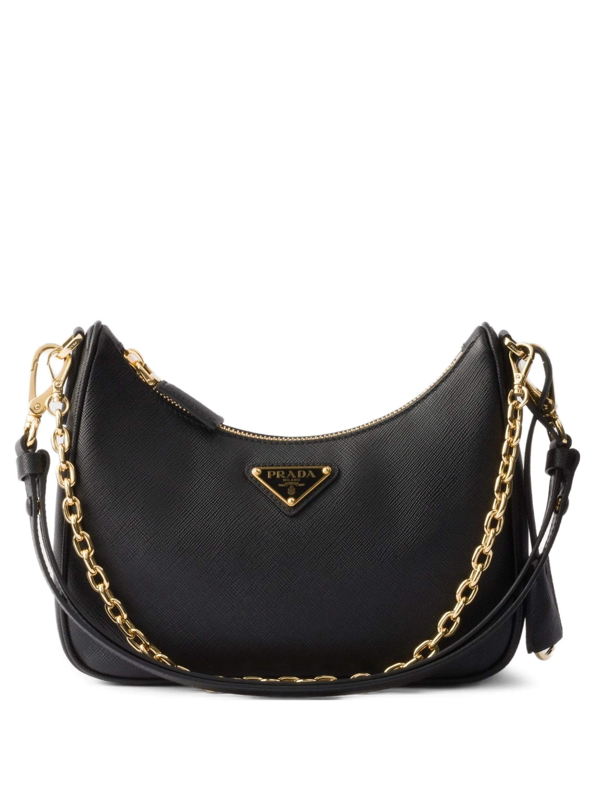 black top zip fastening enamel triangle logo chain-link shoulder strap - depth: 6.0 centimetres, height: 18.0 centimetres, width: 22.0 centimetres - Color: BLACK - Made in: Italy - Designer Style ID: 1BC204 V QOM NZV F0632 Composition and care Outer Composition Calfskin: 100.0%
