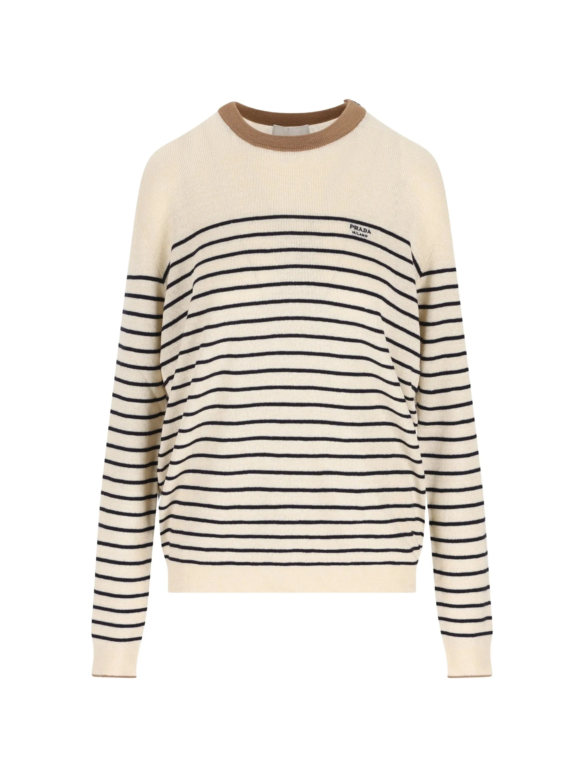 beige striped button detail round neck long sleeves logo detail - Color: NEUTRALS/BLUE - Made in: Bangladesh - Designer Style ID: UMF262 S OOO 188Y F0018 Composition and care Cotton: 17.0%, Linen/flax: 55.0%, Wool: 28.0%