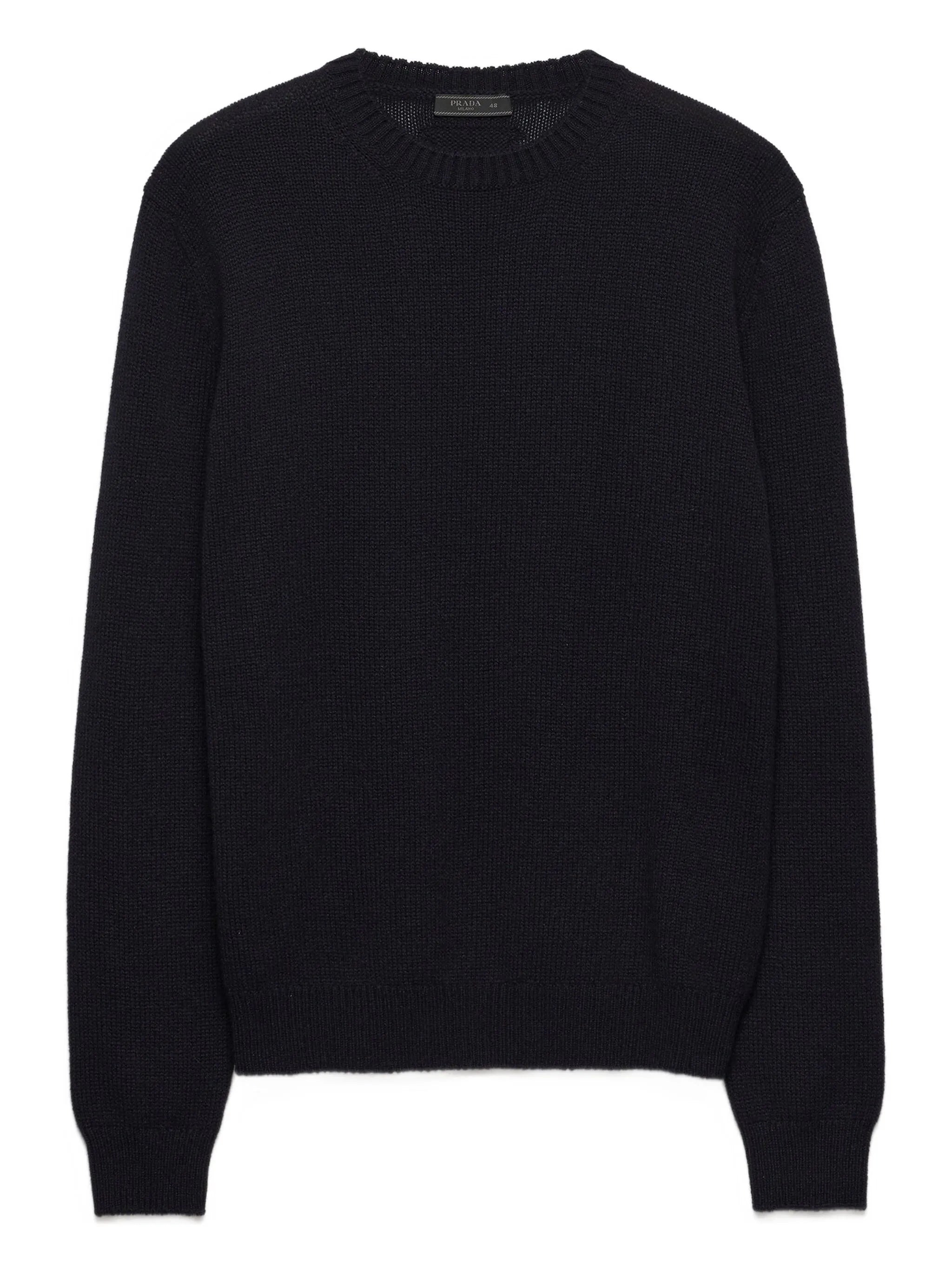 navy blue cashmere ribbed-knit cuffs hem semi-raglan shoulder crew neck knit triangle logo - Color: BLUE - Made in: Italy - Designer Style ID: UMF098 S OOO 17TU F0008 Composition and care Cashmere: 100.0%