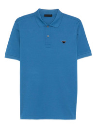 blue triangle logo applique front button placket short sleeves straight hem - Color: BLUE - Made in: Romania - Designer Style ID: UJN444 S WM3 1867 F0076 Composition and care Cotton: 100.0%
