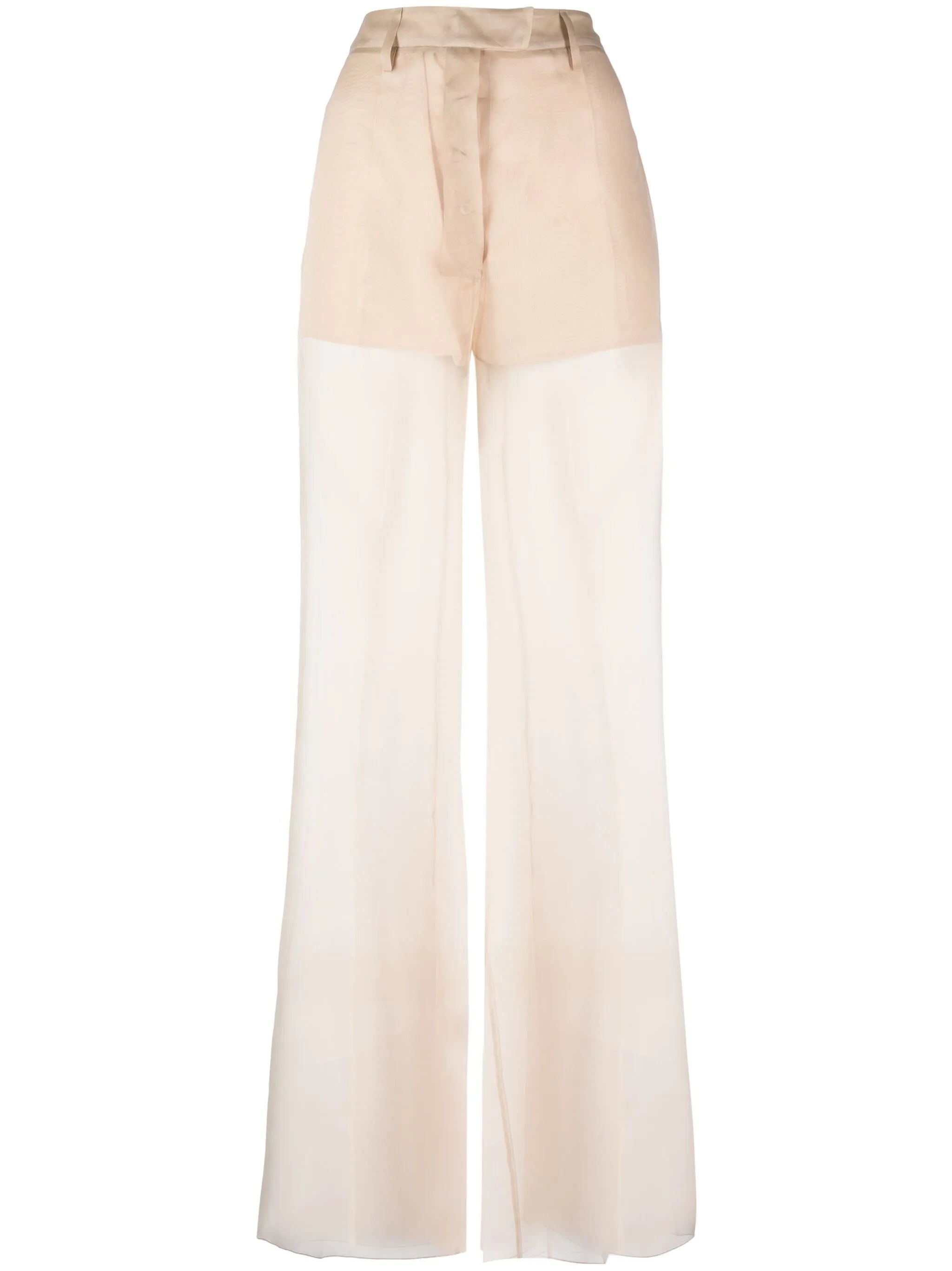 light beige silk organza panels sheer pressed crease belt loops concealed front fastening flared design - Color: NEUTRALS - Made in: Italy - Designer Style ID: P253H S OOO 1344 F0F24 Composition and care Silk: 100.0%