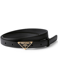 black Saffiano leather logo-buckle fastening enamel triangle logo punched holes - maximum length: 78.0 centimetres, minimum length: 68.0 centimetres, width: 2.0 centimetres - Color: BLACK - Made in: Italy - Designer Style ID: 1CC621 053 F0002 Composition and care Leather: 100.0%