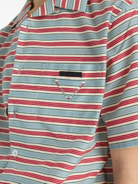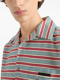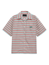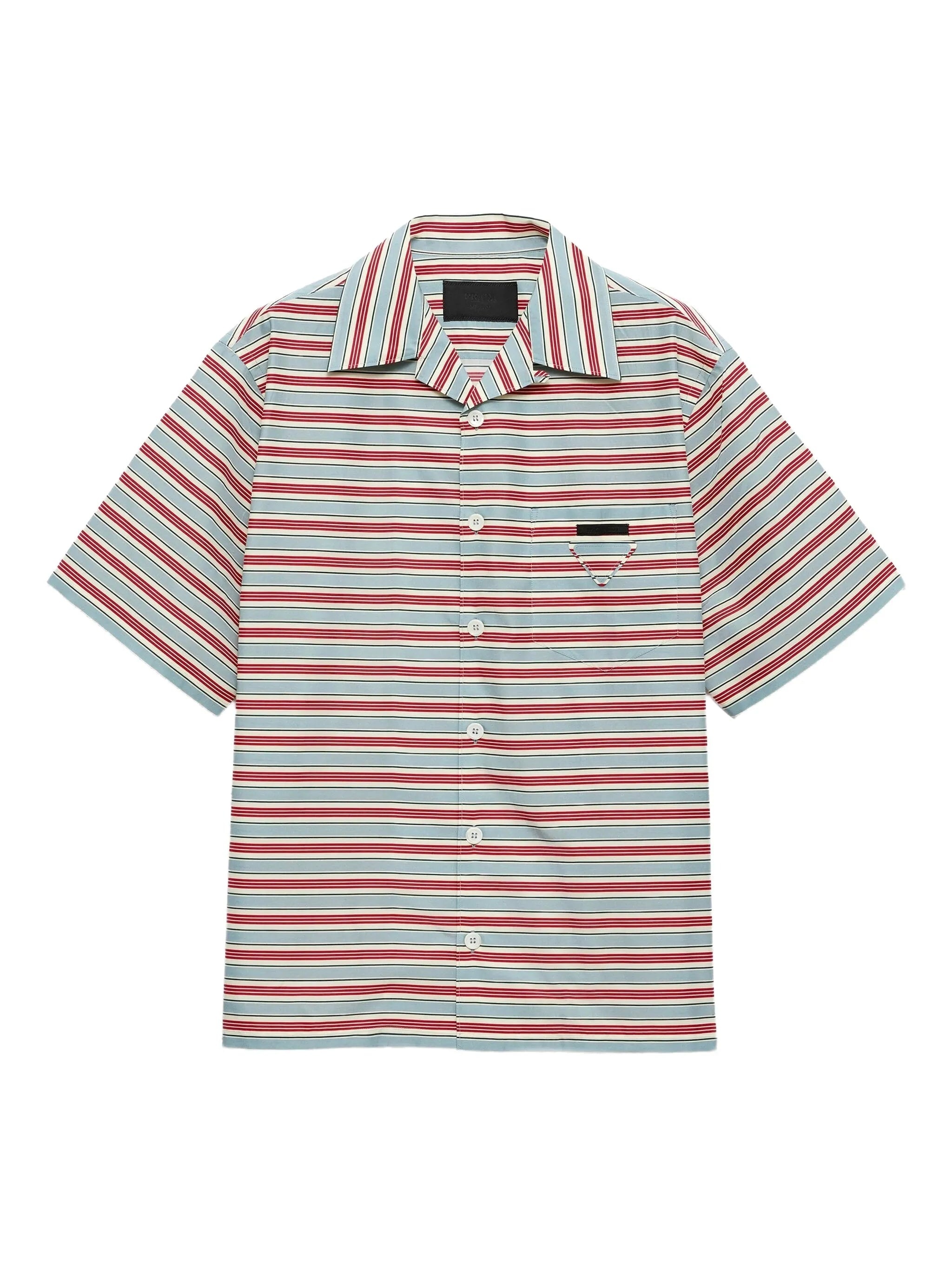 light blue enamel triangle logo horizontal stripe pattern front button fastening short sleeves - Color: BLUE/RED - Made in: Italy - Designer Style ID: UCS414 S UMO 17N4 F0637 Composition and care Cotton: 100.0%