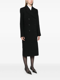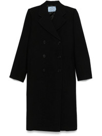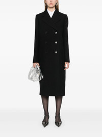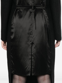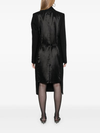 black virgin wool textured finish panelled design double-breasted button fastening notched lapels shoulder pads long sleeves two front jetted pockets satin panelling adjustable strap to the rear central rear vent asymmetric hem mid-length - Color: BLACK - Made in: Italy - Designer Style ID: P601S S OOO 15UW F0002 Composition and care Lining Composition Viscose: 100.0%, Outer Composition Virgin Wool: 100.0%
