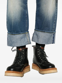 blue distressed effect cuffed hem five-pocket design belt loops - Color: BLUE - Made in: Italy - Designer Style ID: R13MD111 D382C ABLUE Composition and care Outer Composition Cotton: 100.0%, Lining Composition Cotton: 35.0%, Outer Composition Calf Leather: 100.0%, Lining Composition Polyester: 65.0%