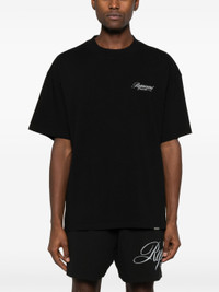 black cotton lightweight jersey ribbed trim screen-printed design crew neck drop shoulder short sleeves logo print at the chest logo plaque logo print to the rear text print to the rear straight hem - Color: BLACK - Made in: Portugal - Designer Style ID: OCM41201-001 BLACK Composition and care Cotton: 100.0%