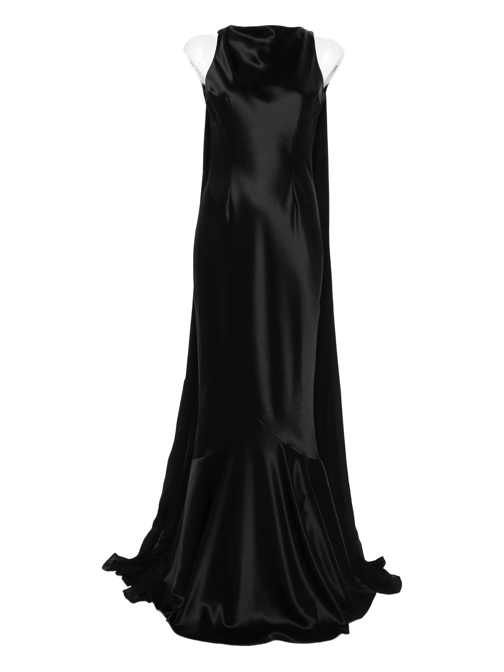 black cowl neck sleeveless fitted bodice fishtail skirt satin fabric - Color: BLACK - Made in: Bangladesh - Designer Style ID: 10120 JULIA BLK Composition and care Fabric: 100.0%