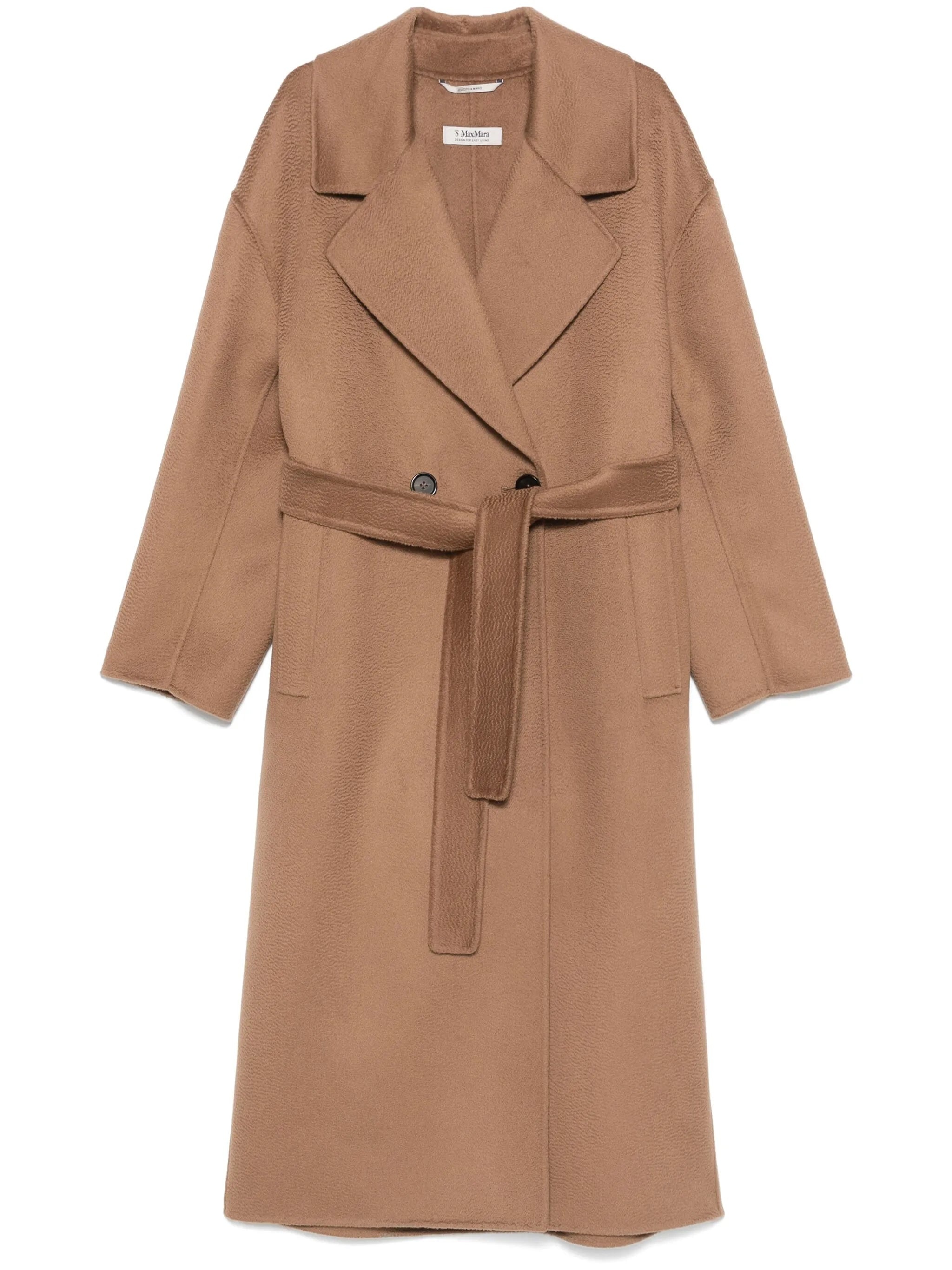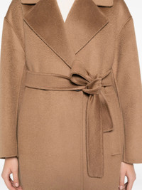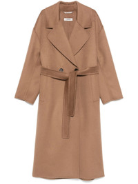 camel brown virgin wool-cashmere blend textured finish double-breasted button fastening notched collar long sleeves belted waist two side welt pockets straight hem mid-length - Color: BROWN - Made in: Bangladesh - Designer Style ID: MANUELE 800 003 Composition and care Cashmere: 34.0%, Virgin Wool: 66.0%