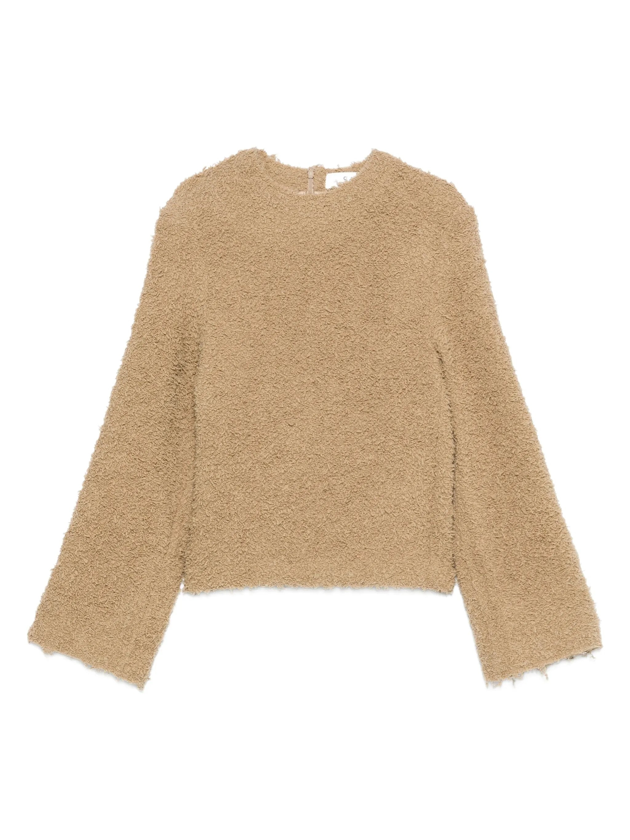 beige textured knit crew neck long sleeves frayed edges - Color: NEUTRALS - Made in: LATVIA - Designer Style ID: CHIARA BEIGE Composition and care Polyamide: 2.0%, Spandex/elastane: 1.0%, Virgin Wool: 97.0%