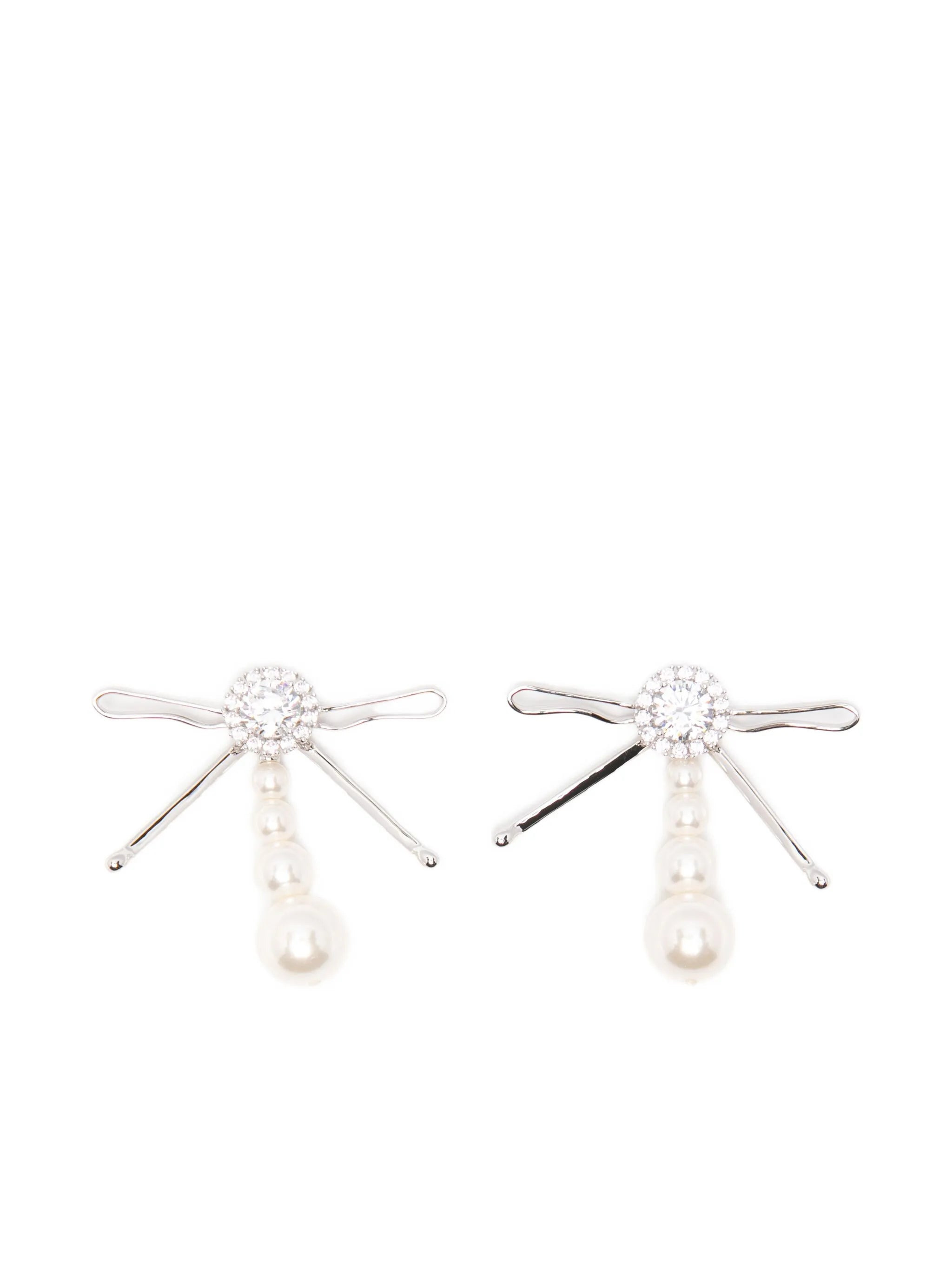 silver pearl embellishment bow detail round cut stones drop style These earrings come as a pair. - Color: SILVER/WHITE - Made in: Bangladesh - Designer Style ID: 25972SLV00DN2 SILVE Composition and care Brass: 100.0%, Glass: 100.0%, Faux Pearl: 100.0%