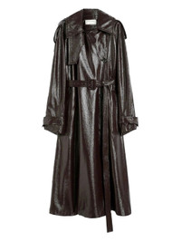 Long trench coat with patent leather effect - RUNWAY - COFFEE