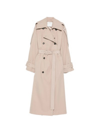 Long water-repellent twill trench coat - beige