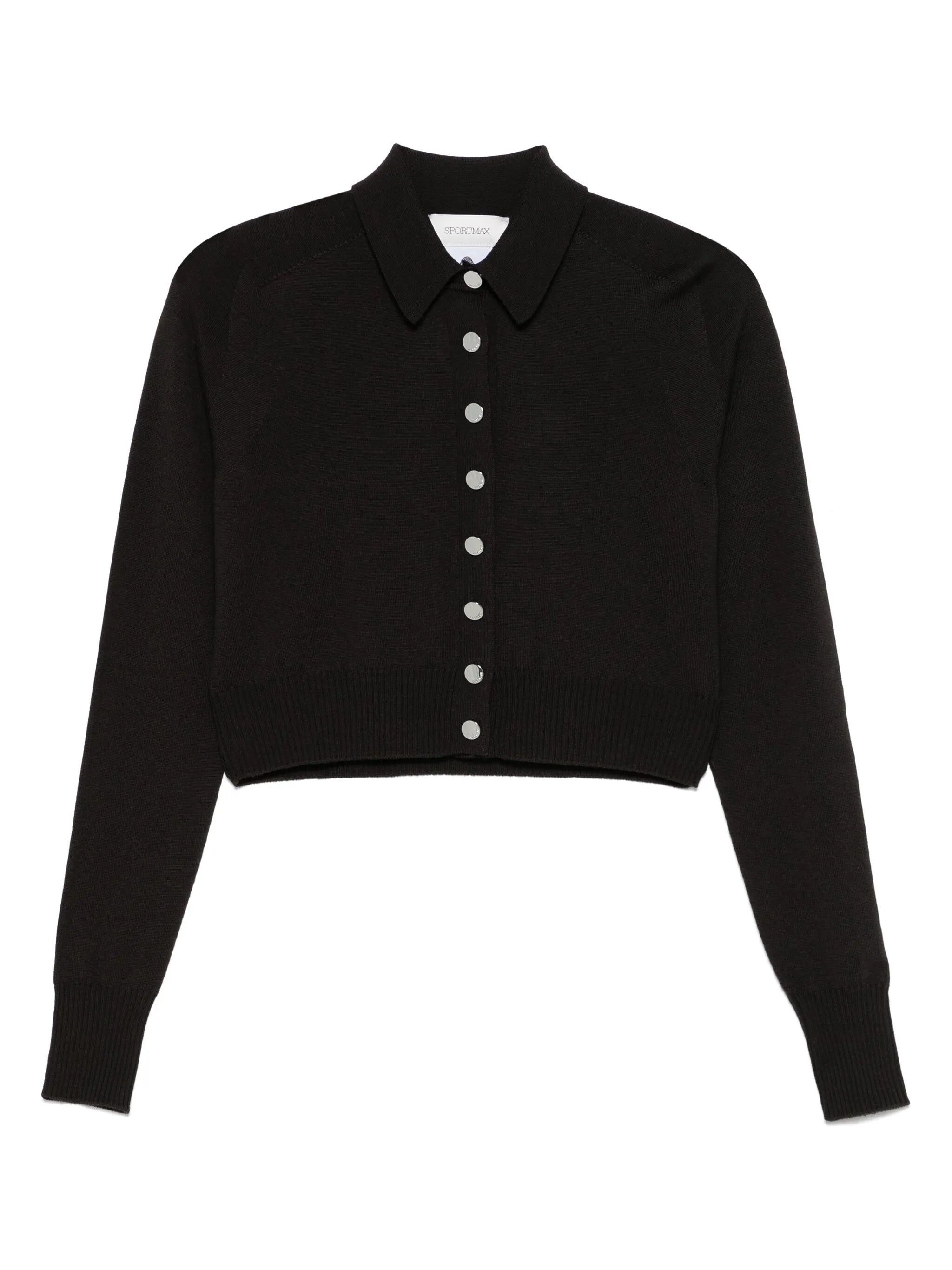 black front button placket cropped polo collar long sleeves - Color: BLACK - Made in: Bangladesh - Designer Style ID: PERSEO 065 006 Composition and care Virgin Wool: 100.0%