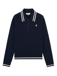 cable-knit striped polo shirt