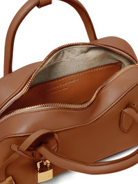 brown recycled polyamide blend two-way zip fastening two top handles adjustable shoulder strap padlock detail debossed logo to the front gold-tone hardware main compartment internal slip pocket debossed internal logo - depth: 8.5 centimetres, height: 12.0 centimetres, width: 24.0 centimetres - Color: BROWN - Made in: Italy - Designer Style ID: 7B0139 WP0533 5742 Composition and care Outer Composition Polyurethane: 49.0%, Outer Composition Recycled Polyamide : 51.0%