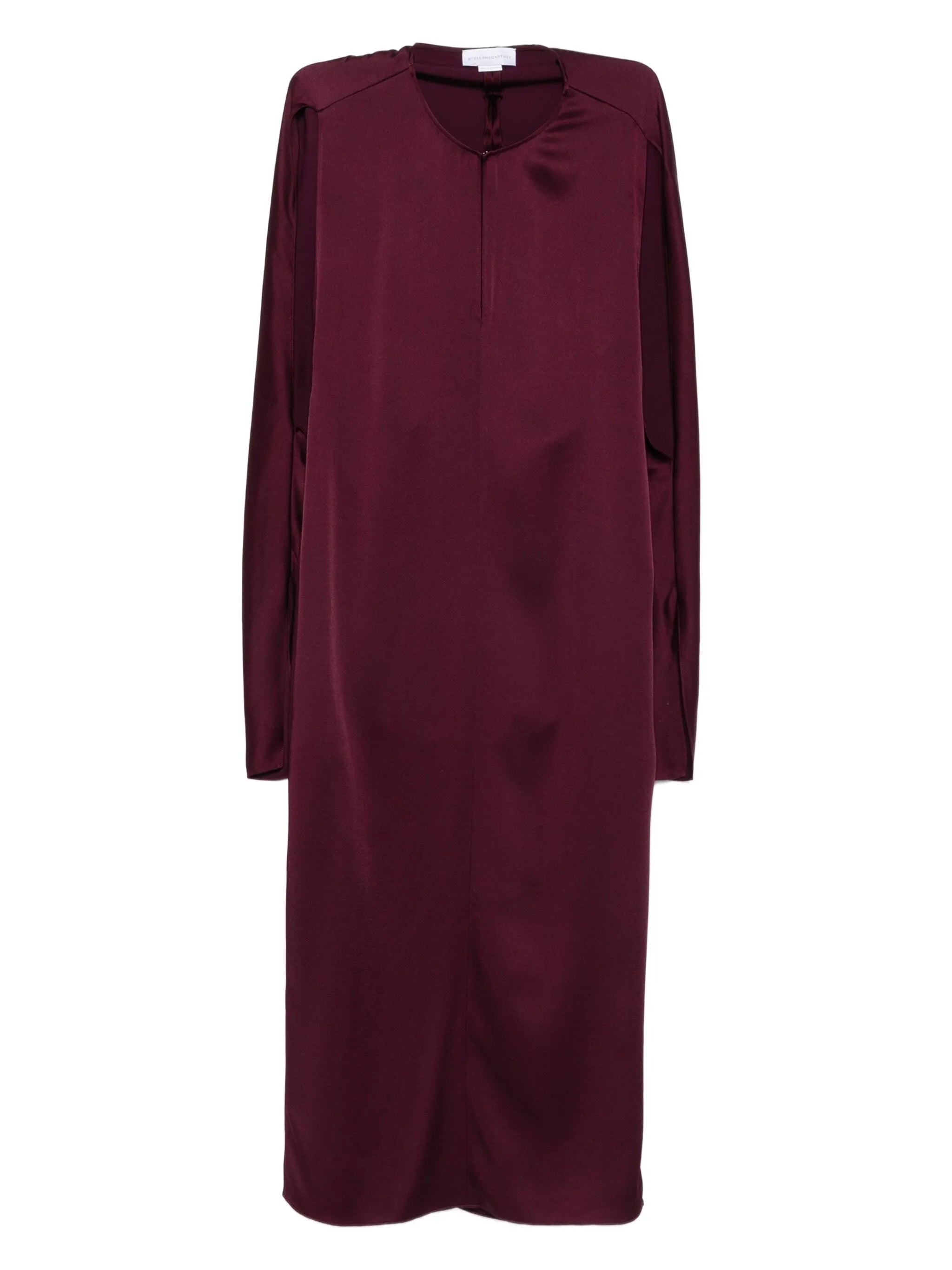 bordeaux red rear button and keyhole fastening cape sleeves cut-out detail - Color: RED - Made in: Romania - Designer Style ID: 6A0541 3FU302 6017 Composition and care Acetate: 73.0%, Viscose: 27.0%