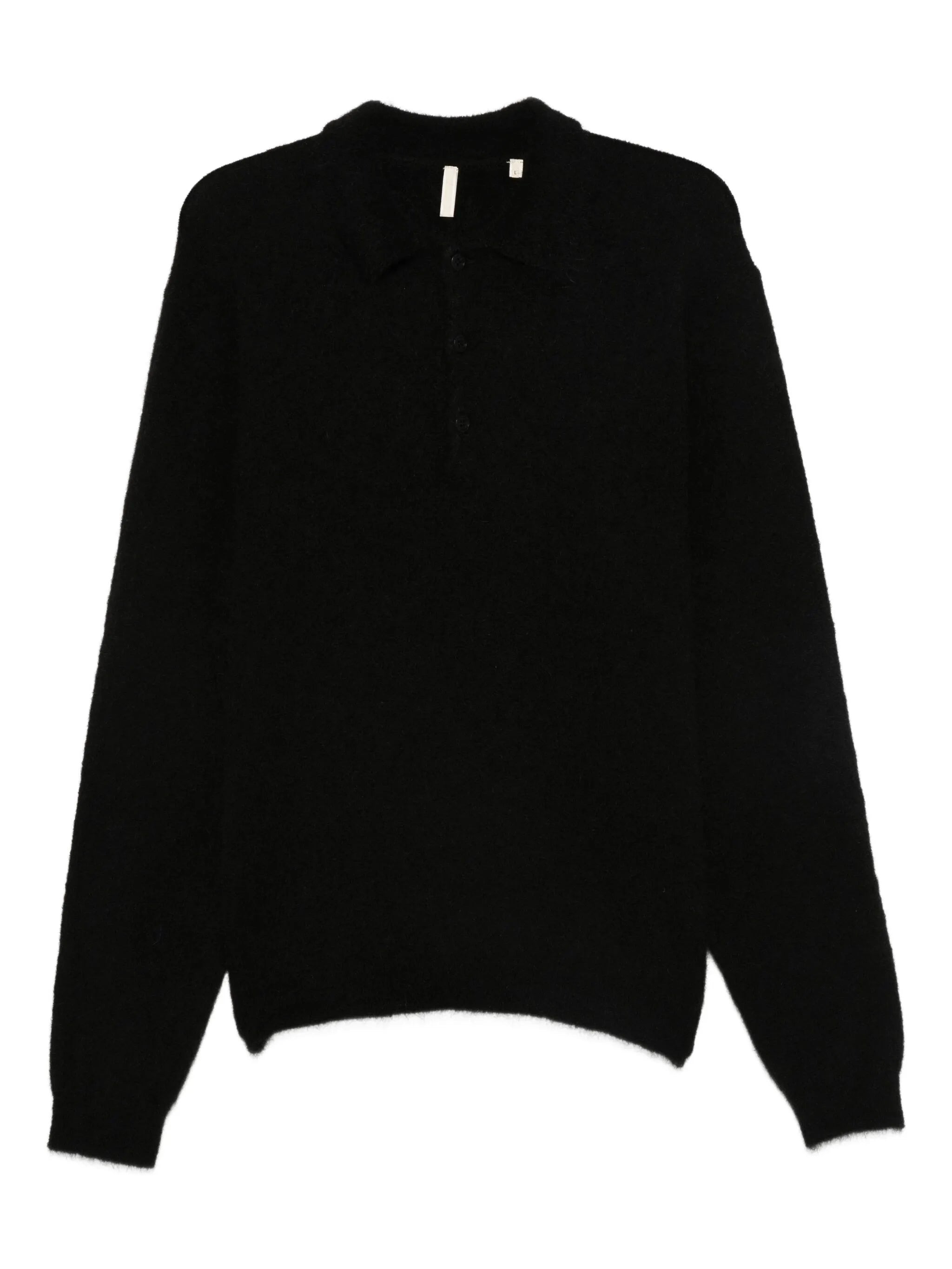 black polo collar long sleeves button placket - Color: BLACK - Made in: Italy - Designer Style ID: 3074 MOHAIR BLACK Composition and care Polyamide: 30.0%, Mohair: 34.0%, Alpaca Wool: 34.0%, Elastane: 2.0%