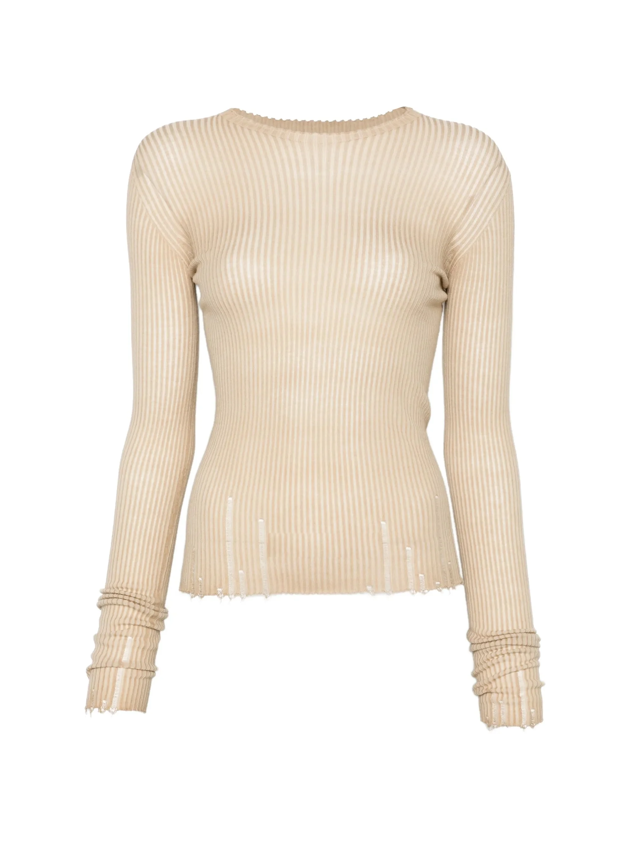 neutrals ribbed knit frayed hem crew neck long sleeves - Color: NEUTRALS - Made in: Italy - Designer Style ID: UK7114 UW200 Composition and care Wool: 100.0%