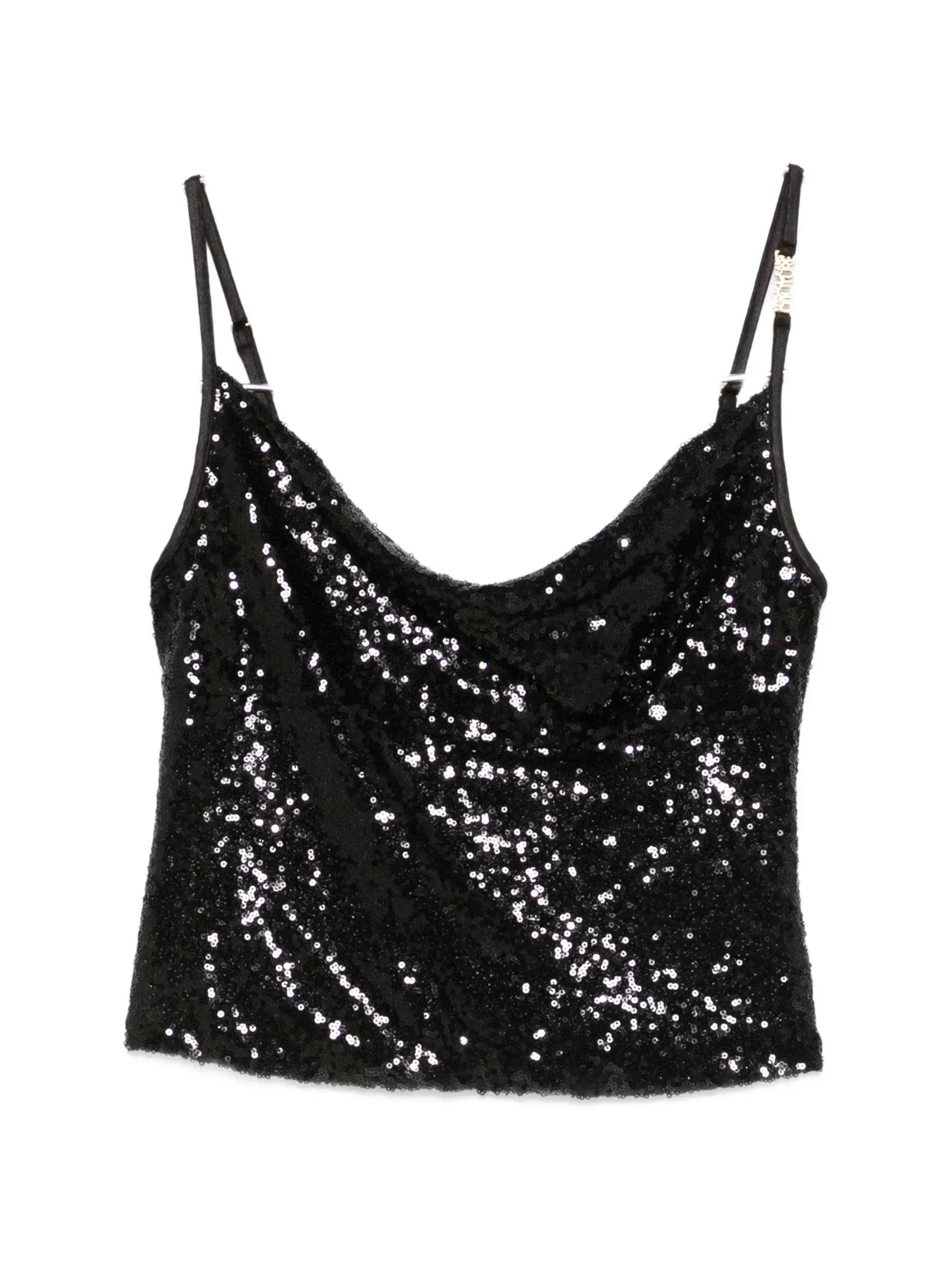 black sequin embellishment adjustable straps cowl neck - Color: BLACK - Made in: Italy - Designer Style ID: 80HAM236 J0267 899 Composition and care Lining Composition Polyamide: 100.0%, Outer Composition Polyester: 97.0%, Outer Composition Spandex/elastane: 3.0%