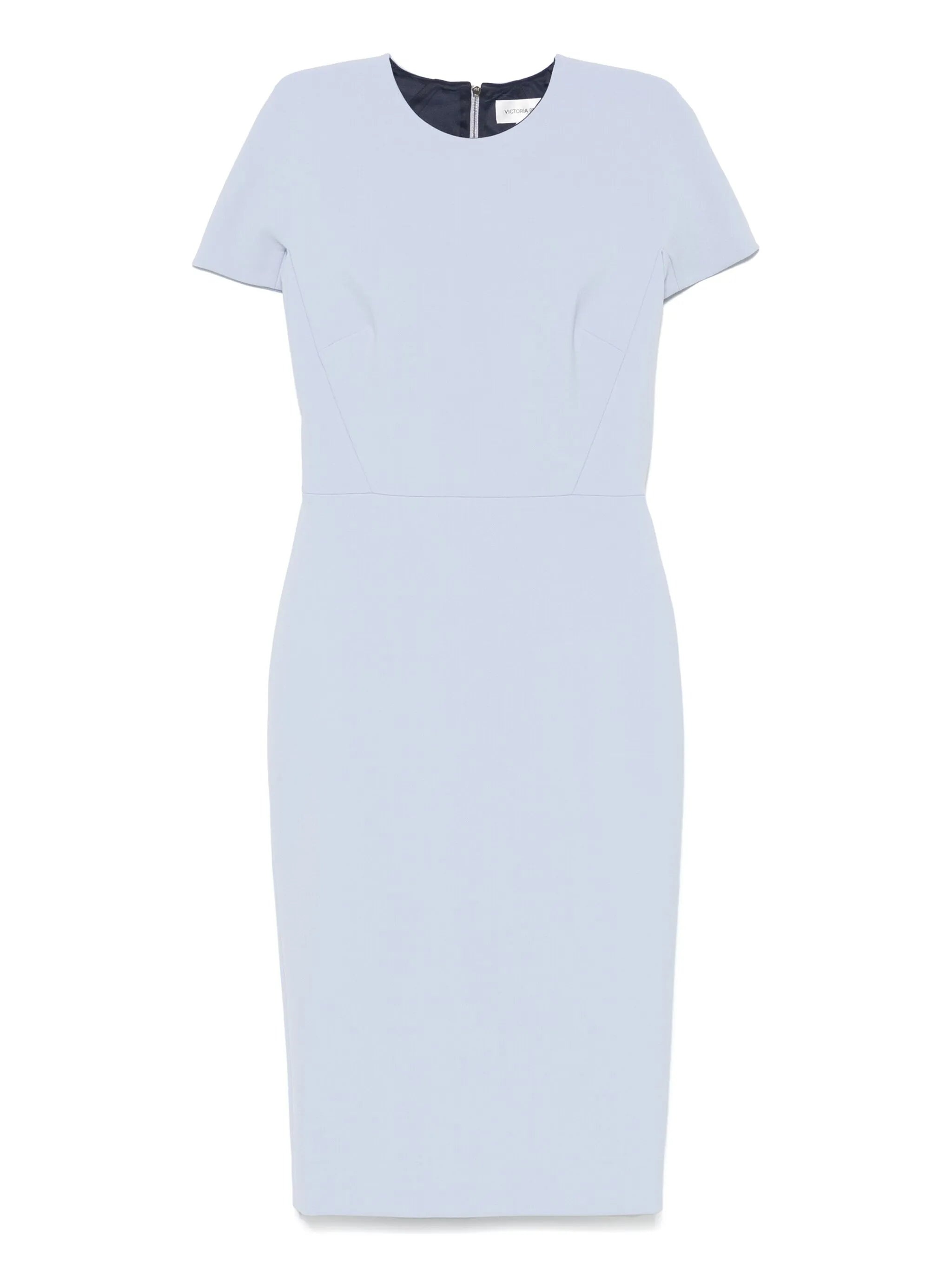 light blue rear zip fastening crew neck short sleeves rear slit - Color: BLUE - Made in: Portugal - Designer Style ID: 1325WDR005232A DELPH Composition and care Outer Composition Polyamide: 16.0%, Outer Composition Polyester: 45.0%, Outer Composition Virgin Wool: 36.0%, Outer Composition Elastane: 3.0%, Lining Composition Elastane: 100.0%