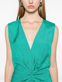 teal green canvas concealed rear zip fastening V-neck sleeveless gathered detailing pleat detailing seam detailing unlined straight hem mid-length - Color: GREEN - Made in: Portugal - Designer Style ID: 1125WDR006142A PAECO Composition and care Viscose: 100.0%