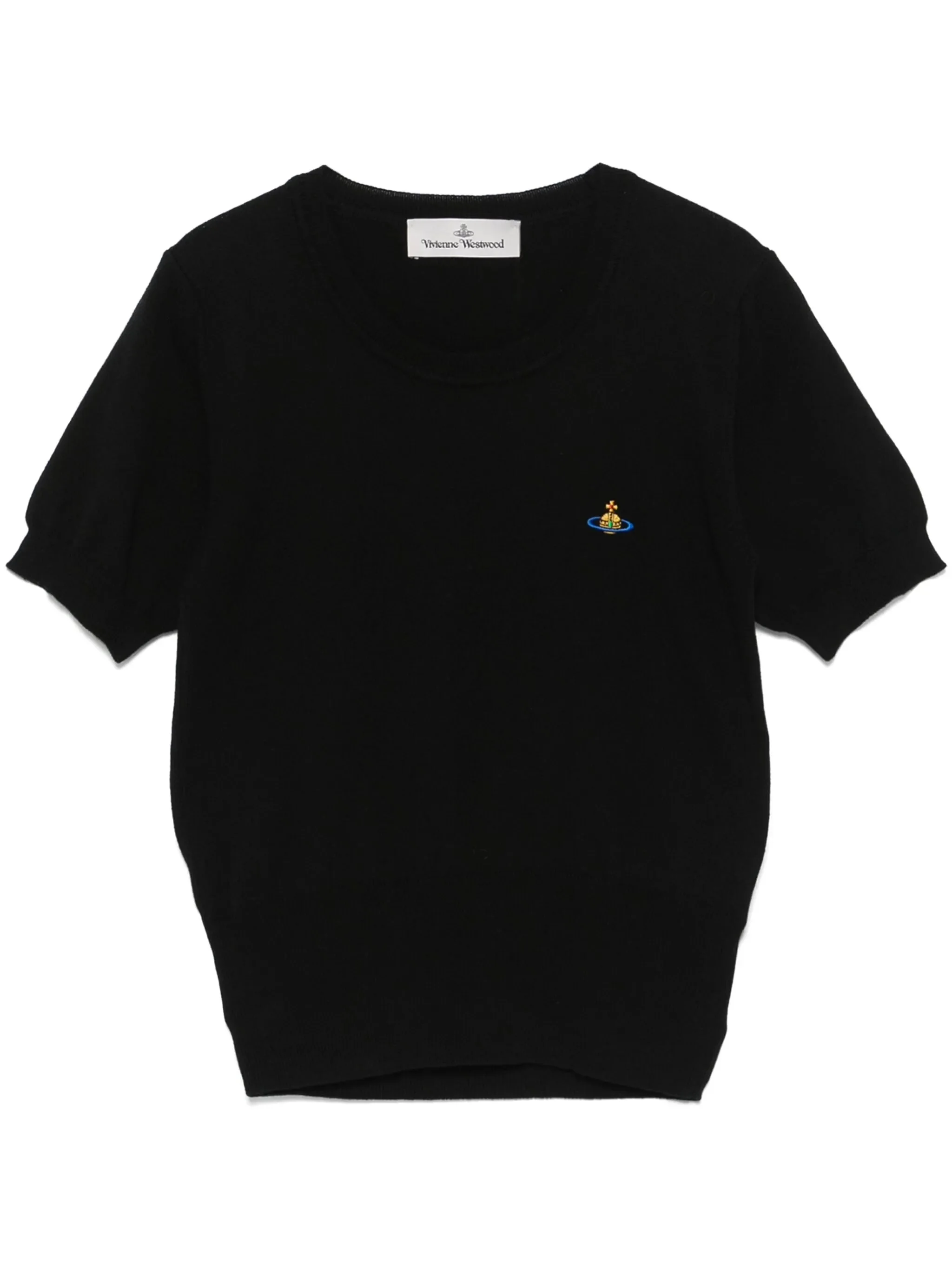 black cotton-cashmere blend knitted construction signature Orb logo embroidery crew neck short sleeves ribbed cuffs and hem - Made in: Italy - Designer Style ID: 1803002Q Y003F N401 Composition and care Cotton: 85%, Cashmere: 15.0%